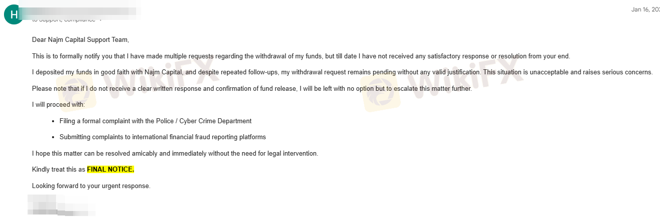 As I am a victim of the Najm Capital scam, I advise all investors to avoid depositing any money with Najm Capital. They earn money from investors’ deposits, they do not transfer any funds to our trading accounts, and the balances shown in the trading accounts are fake. All the money we deposit goes directly to Najm Capital, and they only show it in the fake trading account while we trade on a fake platform. They make us think we are losing from real trades, but it is not real. Even if you earn a profit, they will not transfer a single Dirham, as it is not real profit. I was trapped by my native place people names are Rahman, Alex, and Deepak and be alert any call from them. After taking your funds, they will disappear, and you cannot reach them by phone or any office in the UAE. According to records, they are not registered anywhere in the world. Therefore, please invest your funds only with UAE SCA-regulated brokerages and avoid scams like Najm Capital.