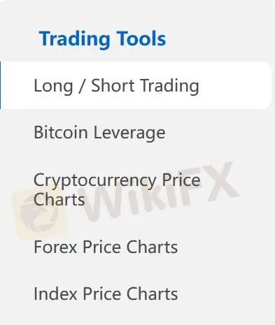 | Trading Tools | Cryptocurrency price charts, Forex price charts, Index price charts |