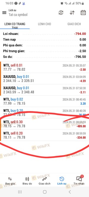 Ngày 31/5/2024 tôi đặt 2 lệnh sell dầu trên sàn ACM, khối lượng là 0,2 và 0,3 tại mức giá tương ứng là 78,11 và 78,15. Stoploss đều đặt tại mức 78,40. Lúc này tài khoản tôi đang có khoảng 800USD. Nếu cán SL thì tôi mất mỗi lệnh khoảng 35-40USD. Tuy nhiên, sau khoảng 10p tôi vào lại tài khoản để kiểm tra thì thấy 2 lệnh này đã bị đẩy lên mức giá 79.78 và tài khoản đã âm gần 800USD. Nhưng thực tế giá dầu trên thị trường lúc này chỉ đang ở mức 78,28 và chưa chạm SL. Sau đó giá dầu đã giảm xuống rất mạnh. Tôi không rõ sàn ACM đã điều chỉnh như thế nào để 2 lệnh của tôi vọt lên mức giá cao như vậy trong khi giá thị trường đang đi xuống. Vì sự điều chỉnh này của sàn ACM mà lẽ ra 2 lệnh của tôi từ có lợi nhuận lại biến thành âm nặng và dẫn đến cháy tài khoản ngay sau đó. Tôi đã gửi email đến sàn đề nghị giải quyết nhưng không nhận được phản hồi. Biết rằng khả năng thu hồi được tiền là rất thấp nhưng tôi vẫn hy vọng nhận được sự hỗ trợ, và cảnh báo đến các nhà đầu tư nên tránh xa sàn ACM.