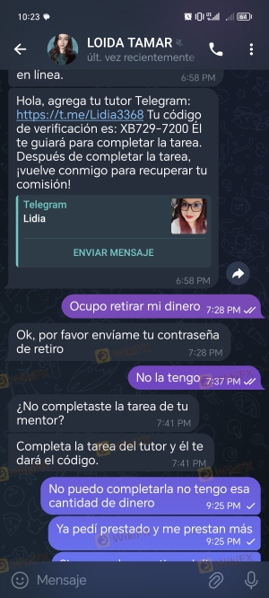Te escriben por WhatsApp te dicen que te darán trabajo y que ganarás de 60 a 10000 diarios pero es mentira te dan 60 de una tarea y Lugo tienes que completar tareas pero con tu dinero yo perdí 12500 y querían 35500 más y les pedí el retiro del dinero y ellos solo te dicen que consigas más que tienes que terminar y no te devuelven tu dinero juegan con lo poco que tienen las personas trabadoras y de la necesidad me dejaron con deudas por ese dinero y no es justo la verdad que jueguen así con las personas más si uno lo hace por nesecidad pero qui dejo la evidencia de como trabajan ellos para realizar el fraude ojalá pudiera recuperar el dinero aquí les dejo estas imágenes