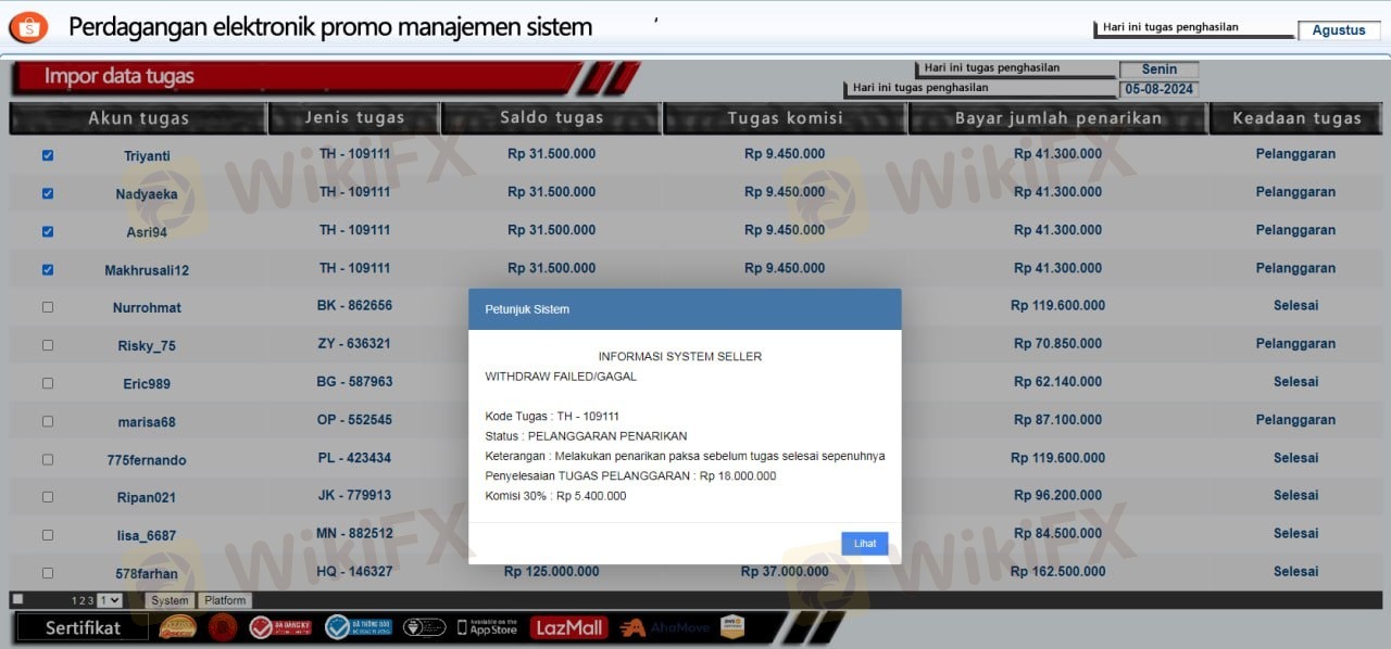 Kita dikasi tugas setiap tugas ada komisi, tp kt tidak dijelaskan dr awal bagaimana tugas itu. Saat sy ingin berhenti menthor bilang tidak bisa melakukan penarikan dana karena tugas blm selesai. Mohon di selidiki karena dana saya sudh banyak masuk