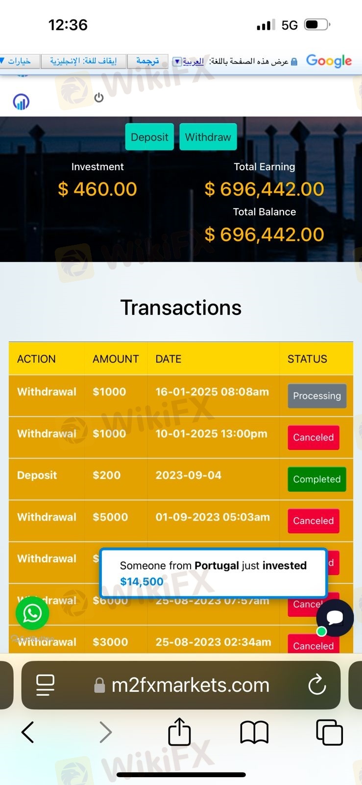 this was so crazy. it happen on year 2023. i deposit for opening account of usd250. then a couple of weeks i earn a big return with there apps. then my account having more that 6k usd. and more.. then i try to withdraw and person who are communicating me and guide me to how to withdraw. then you can only withdraw your money to deposit for processing for a payment of some person to approved the withdrawal.. in my taught that all be are smooth and clear. i made the deposited for usd1000. after she received and she ask another deposit again. after i followed her and after no money come in my account. its still processing... in all thing happen i was been fool in scammed by this m2fxmarkets.com....this a big lie and scammer.
