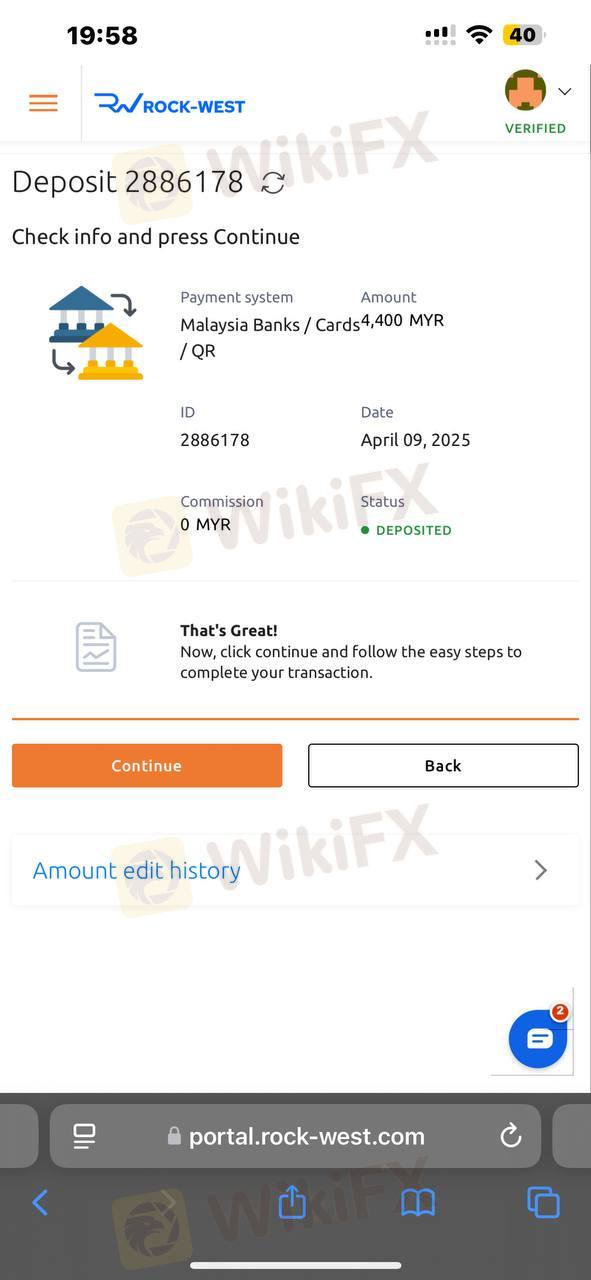 Deposit Money Delay when you floating -ve this broker ROCK-WEST problem very problem deposit issue many time delay 1 hour many issue on that i deposit money to my account to cover my floating then after my account stop out my money still pending after a while not suggest this company very stupid.they target user to lossing money first and deposit will added after you lossing all money DONT USE THIS STUPID COMPANY