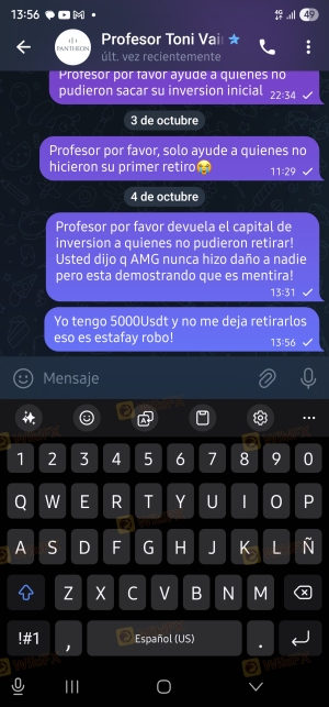 desde hace unos meses hacia copy trading en una app llamada AMG, llegue a tener 5000 USDT en la app, sin embargo desde hace una semana no me dejaron sacar nada de los 5000 ni una parte y ahora me bloquearon en la app y me borraron de los grupos de telegram por los cuales enviavan señales de un momento a otro... lo perdi todo y necesito el dinero para el tratamiento de columna de mi esposa, por favor ruego por ayuda escribo desde Bolivia :'(