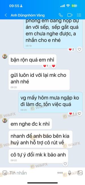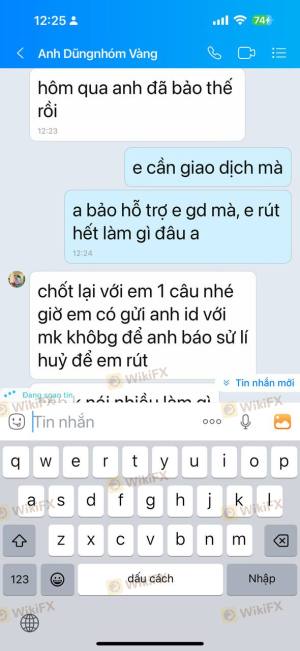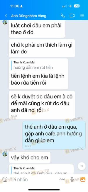 Lúc nó hướng dẫn mình mở tk giao dịch xong nó bảo mình cung cấp id và mk sàn gửi trong mail để nó hướng dẫn mình quản lý tk, mình đã cung cấp cho nó. Sáng hôm sau mình thấy nó tự vào lệnh mình thấy âm mình cắt xong mình đổi mk ko cho nó giao dịch nữa. Mình làm lệnh rút tiền nó đòi id và mạt khẩu giao dịch vàng thì nó mới báo sàn duyệt lệnh rút cho. Nhưng mình ko cho nó lại nữa. Nó cứ gây khó dễ và nhất định ko hỗ trợ rút tiền và còn bảo là sàn ko cho rút vì nạp vào rút ra ngay là rửa tiền. Nhung thật ra mình thấy ko an toàn là mình rút. nhưng nay 2 ngày rồi nó vẫn treo tiền của mình chưa chuyển về.