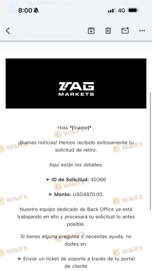 He retirado muchas veces y nunca he tenido un problema , o una llamada de alguien preguntándome porque voy a retirar , confío mucho en tag markets y velocidad de respuesta para los traders y clientes de el mundo