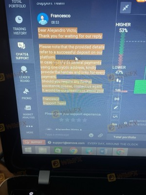 Realicé un depósito de 94 USDT (TRC20) el 22 de octubre de 2025, desde mi billetera Binance hacia la dirección generada por Exnova La transacción fue exitosa y confirmada en la blockchain TRON,Han pasado varios días desde la confirmación y los fondos aún no se reflejan en mi cuenta Exnova Me he comunicado con el soporte oficial, enviando todos los datos y la captura de Tronscan, pero no he recibido una solución ni acreditación del saldo. Solicito que se investigue la falta de acreditación del depósito y que la empresa aclare públicamente el estado de la transacción.