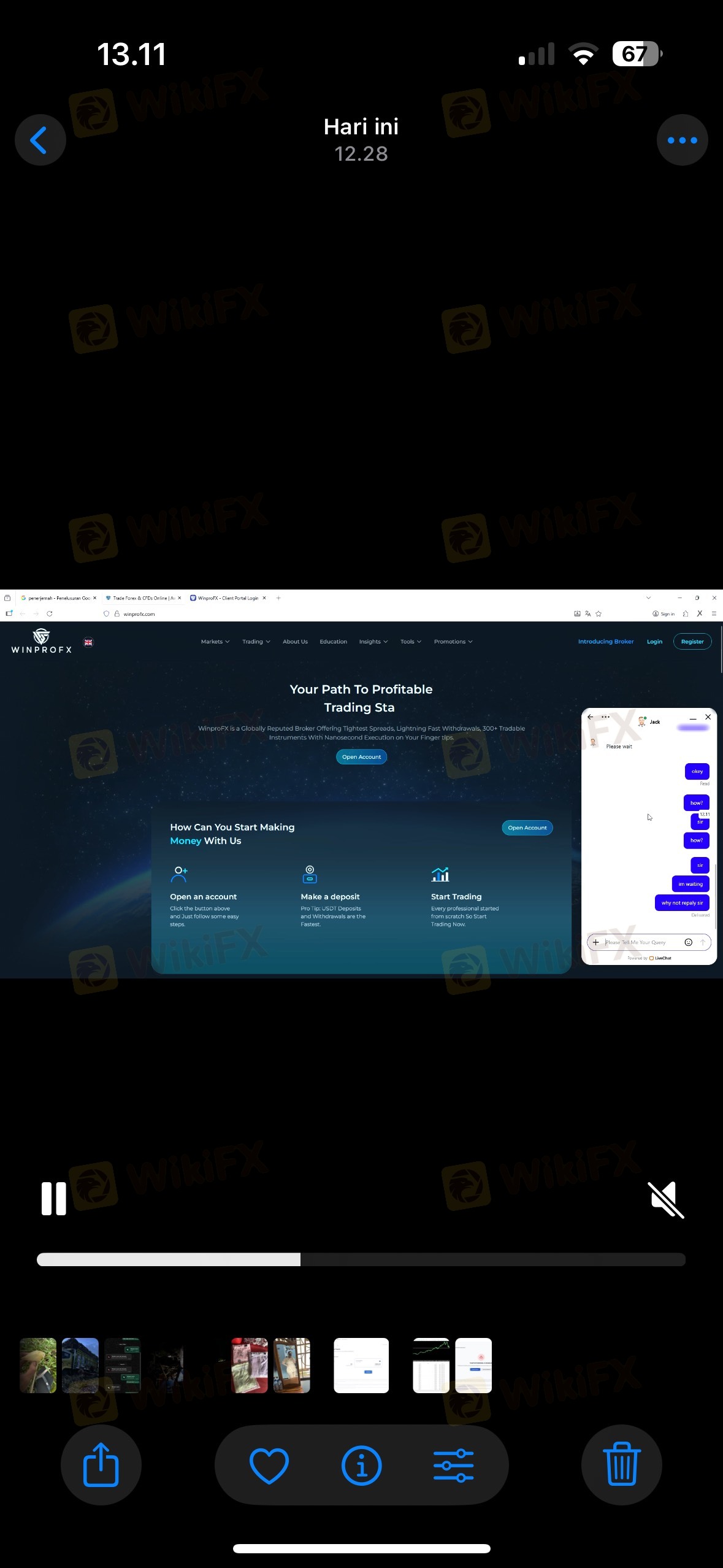 broker penipu, pertama mereka menghapus emua profit saya dan sekarang mereka tidak mengizinkan saya mengambil dana saya. penarikan saya tidak di perbolehkan oleh winpro, dan tim dukungan tidak ada respon hanya di suruh menunggu saja.