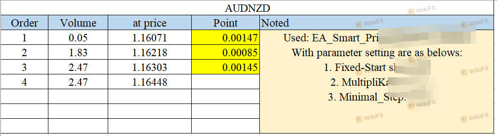 Tôi đã tham gia nền tảng này trong 2 tháng và vào ngày 6 tháng 1 năm 2025, nền tảng đã tự động mở 3 cặp tiền tệ AUDNZD với đòn bẩy quá cao và hệ số nhân là 1,3. Lệnh 1: Khối lượng giao dịch 0,05 nhưng Lệnh 2: Khối lượng giao dịch 1,83 và Lệnh 3 và 4 Khối lượng giao dịch 2,47... khiến tài khoản nổ tung, khiến tôi mất khá nhiều tiền, hoàn toàn gian lận, trả lại tiền cho tôi.