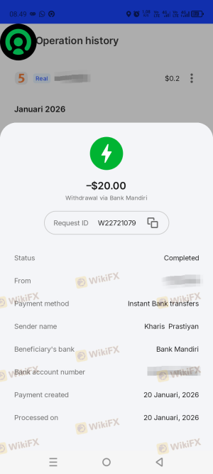 saya sudah melakukan penarikan dana sebesar 20dollar di tanggal 20 dengan status berhasil di aplikasi tapi uang tidak ad masuk ke rekening saya