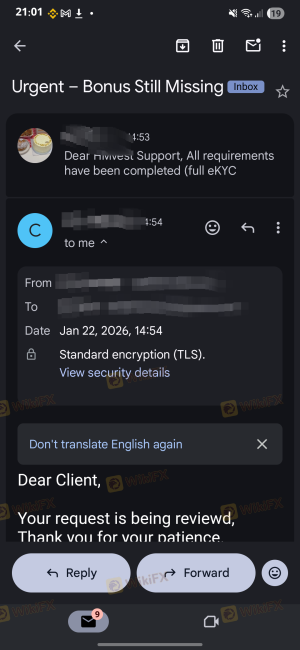 Despite full compliance and repeated contact attempts, I have received no effective response, and the bonus has still not been credited to my trading account.