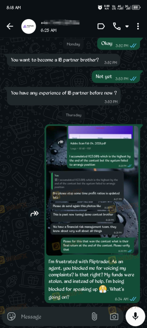 🚨 Warning: Flip Trade Group is a scam! They're unregulated and stole my $611USD on Feb 2nd. They're running fake trading competitions to lure traders. Demo and live contests are rigged, winners are fixed, and they'll steal your deposits and earnings if you try to withdraw. Don't fall victim like me 🙅♂️.