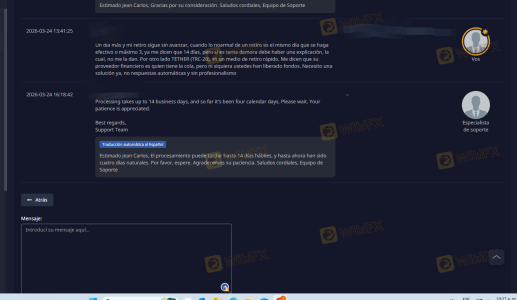 Despite exceeding the 3-day standard processing time, the support team only provides evasive and automated responses, claiming a 'queue' that does not exist for blockchain transactions.