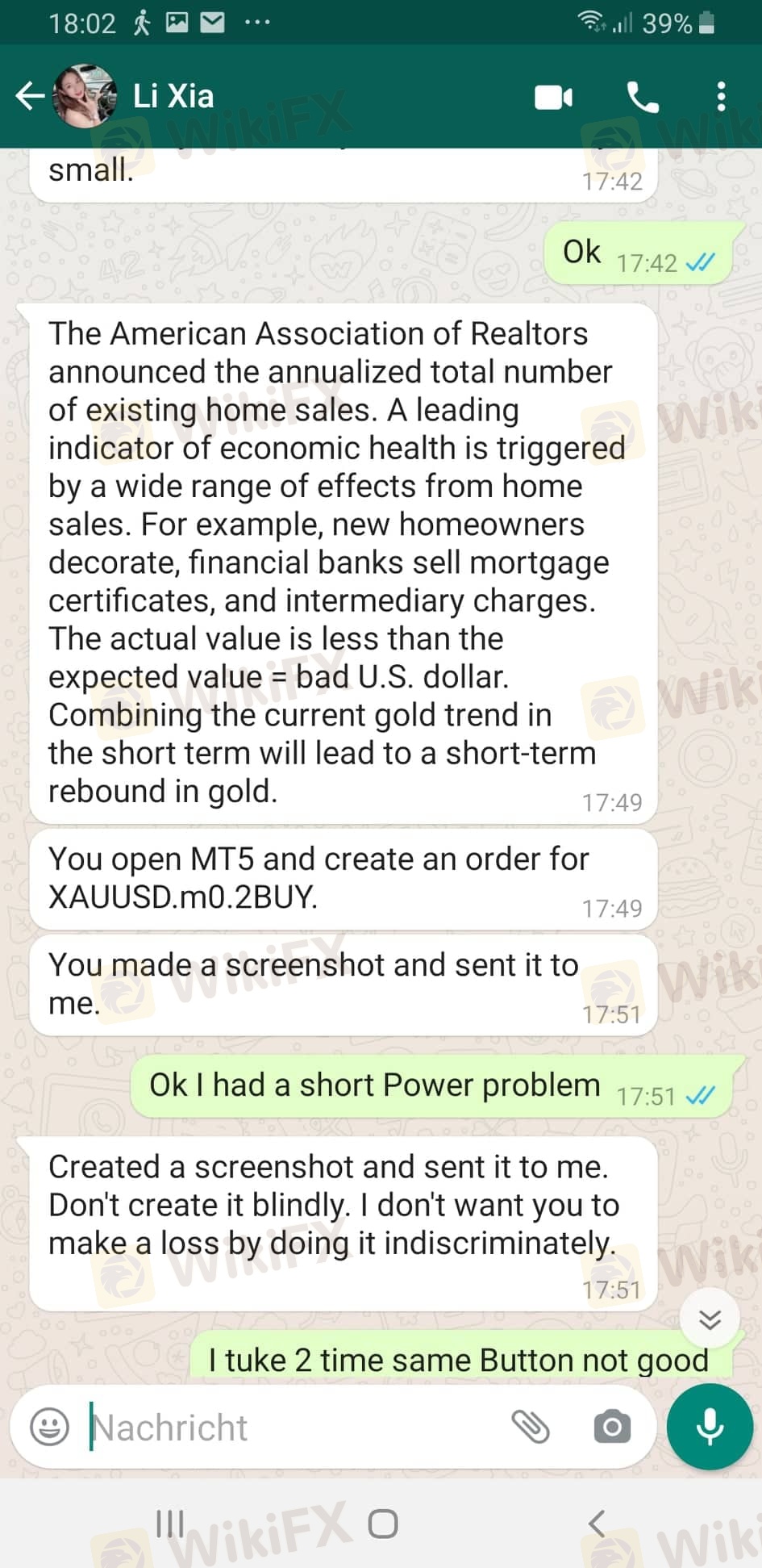 ich wollte 5000 EUR von meine Gewinn abheben und bekam die Antwort bezahle zuerst 11.000 Dollar Steuer vom Gewinn, was kein Problem war da genug am Handelskonto war, aber die wollten eine zusätzliche Überweisung ins Niemandsland und dann dürfte ich wieder auf mein Konto zugreifen. Das Geld ist weg ... LI XIA war ihr verdammter Name. Sie meinte ich hätte sie beleidigt und deswegen würde sie keinen Kontakt mehr haben wollen, Kontozugang verweigert, nachdem sie mit einem chinesichen Freund von mir telefoniert hat. Er war sicher und hat schon gewusst, dass sie eine Betrügerin ist. Ich leider nicht ... !