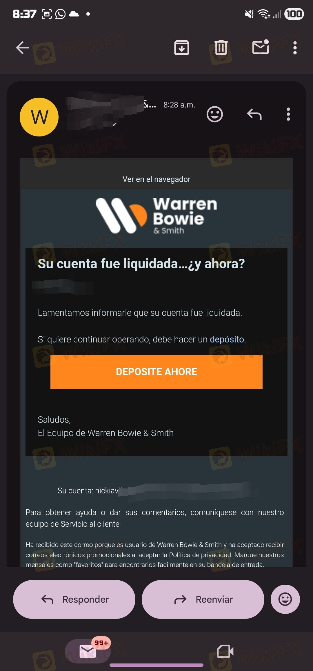 Warren Bowie and Smith are a real scam. About a month ago, they told me to make a minor deposit of 200 USD, gave me a 100% bonus, then I deposited another 500 USD, then 1000 USD and they gave me some bonus from that. On June 30, 2025, I deposited 1700 USD where they told me I would get a bonus. However, it was one lie after another. They told me I had to activate the rebate plan in order to start withdrawing, they never activated it and they don't let you withdraw the money. In total, I have deposited 3400 USD and I was never able to make a withdrawal, a complete scam. I wonder if you can help me recover my money, thank you very much.