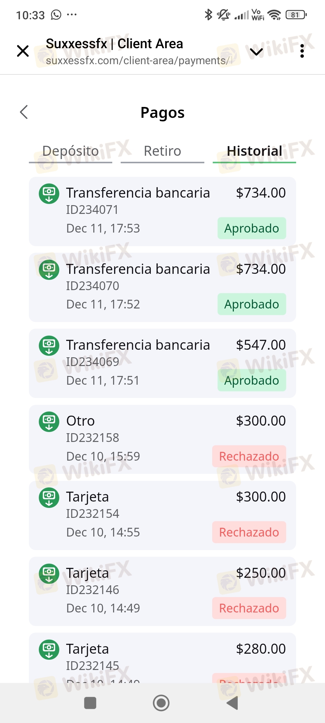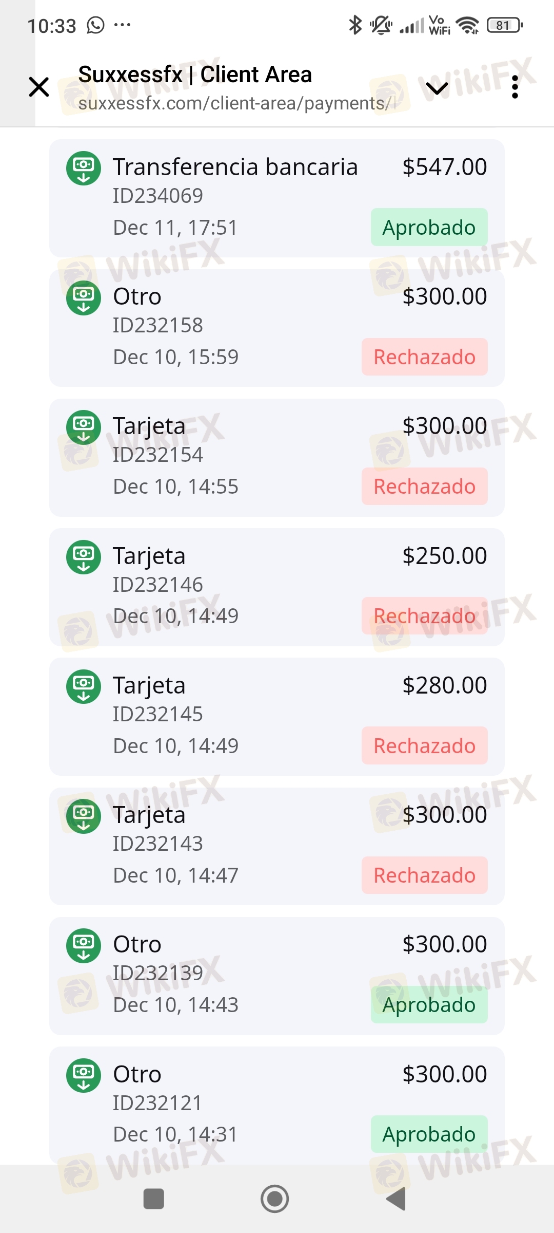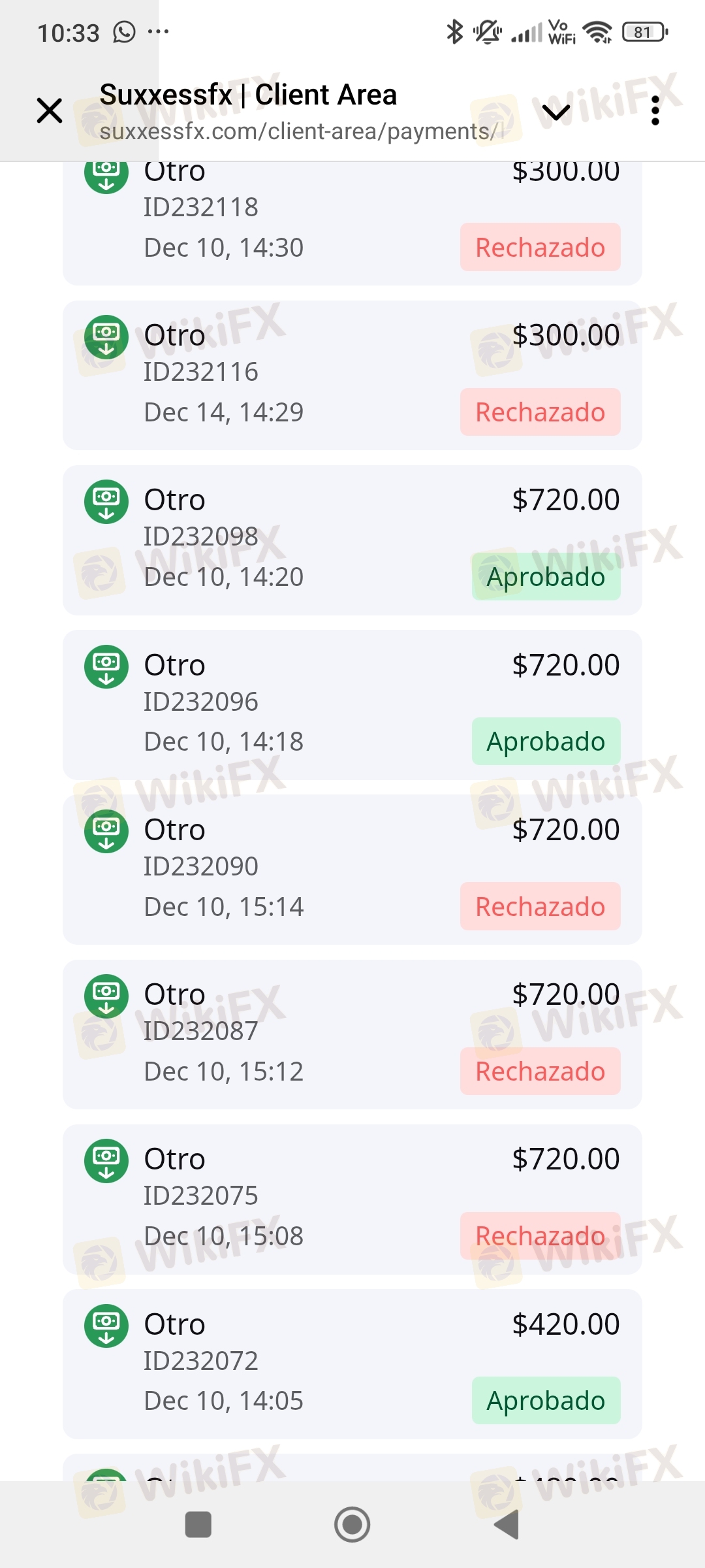 hace 2 meses decidí invertir con suxxessfx, se mostraron como una empresa demasiado seria, la primera inconsistencia que tuve es que al hacer un retiro de 200 dólares se demoraron en llegar a mi cuenta 25 días, sin embargo cuando los depositan me llaman y me dicen que tengo que consignar porque el oro en ese momento iba a subir, y si subió y reflejo ganancias, pero aunque no tuviese pérdidas en mi cuenta el retiro no era posible por mi tipo de cuenta, 15 días después me llaman diciendo que mi margen está demasiado bajo y que en 2 horas tenía que conseguir 6000mil dólares para cambiar mi tipo de cuenta aunque sea por un mes porque ellos me iban a brindar el respaldo para que mi margen no volviera a bajar y estuviese tranquila a las 5 días de haber consignado me dicen que me toca consignar de nuevo porque ellos me tienen que retirar el respaldo por políticas de la empresa 1 que para el 31 me toca consignar 11mil dólares sino pierdo todo mi capital.No cumplen su palabra.