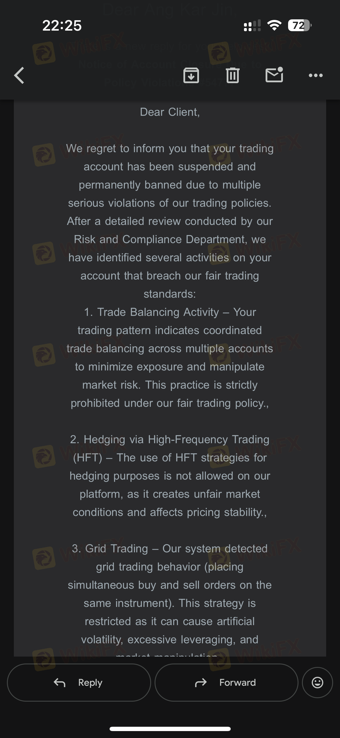 Last June 22, 2023 i traded GBP news. 4 of my orders automatically closed below 180 seconds which already under violation by the Vonway policies . The issue is, i know they are only allowed to trade above than 180 seconds but during this news 4 of my orders was closed automatically below than 180 seconds. It seems like they close my order to start the manipulation and accuse me that i am using the Expert Advisor (EA) technique which is this technique also is under violation. Now they’re declined to withdraw the balance of my account with the reason their system detected that i’m using Expert Advisor (EA) system. They’re simplify accuse me while i’m just using buy and sell stop.