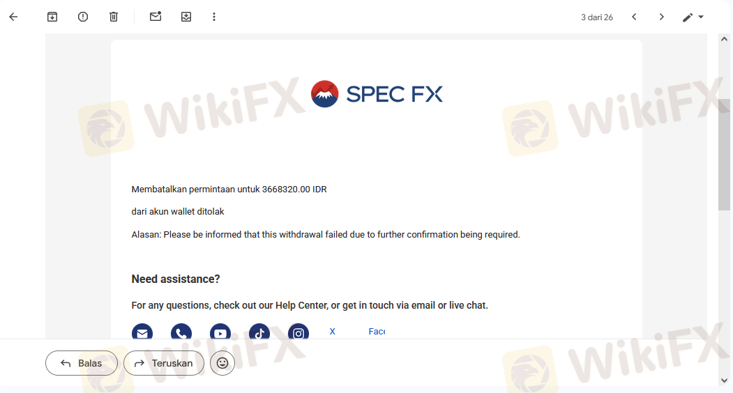 SPEC TRADING holds valid licenses from ASIC (Australia) and FSCA (South Africa), earning a respectable WikiFX score of 6.63 despite being established recently in 2024. However, traders must exercise extreme caution regarding its high 1:2000 leverage, which presents significant financial risk despite the platform's regulatory compliance.