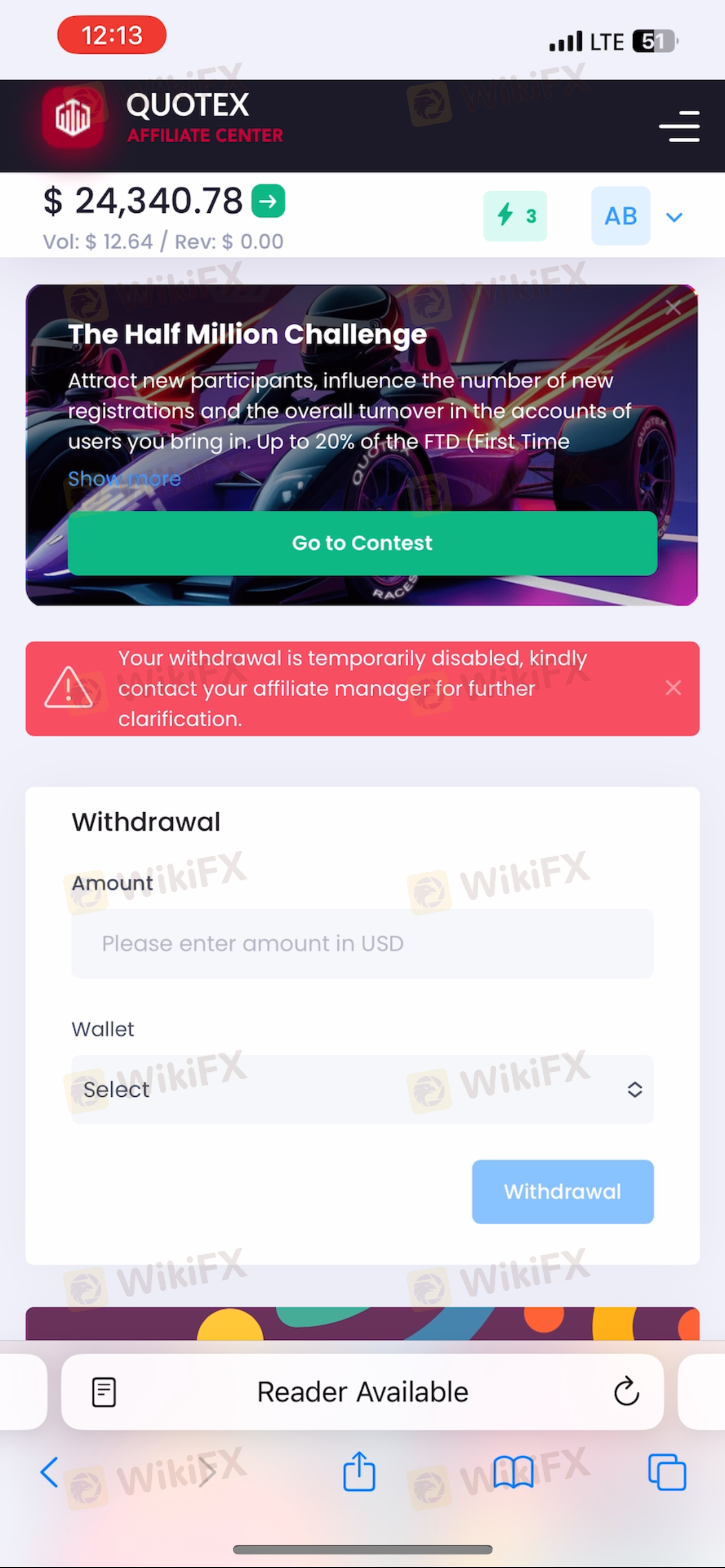 I am an official affiliate partner of Quotex, not a trader. Quotex is unlawfully withholding my earned affiliate commissions totaling $24,340. These are legitimate marketing revenues shown in my affiliate dashboard, not trading losses. Despite multiple withdrawal requests, Quotex has deliberately blocked my funds without any valid reason. This is a clear case of financial fraud and breach of contract. I have now filed an official international fraud report with the FBI Internet Crime Complaint Center. FBI IC3 Case ID: 48aa0cec28b148b788d18d89c52eb8a8 This is no longer a private dispute. This is a registered international financial crime case. I strongly warn all affiliates and traders to stay away from this company.