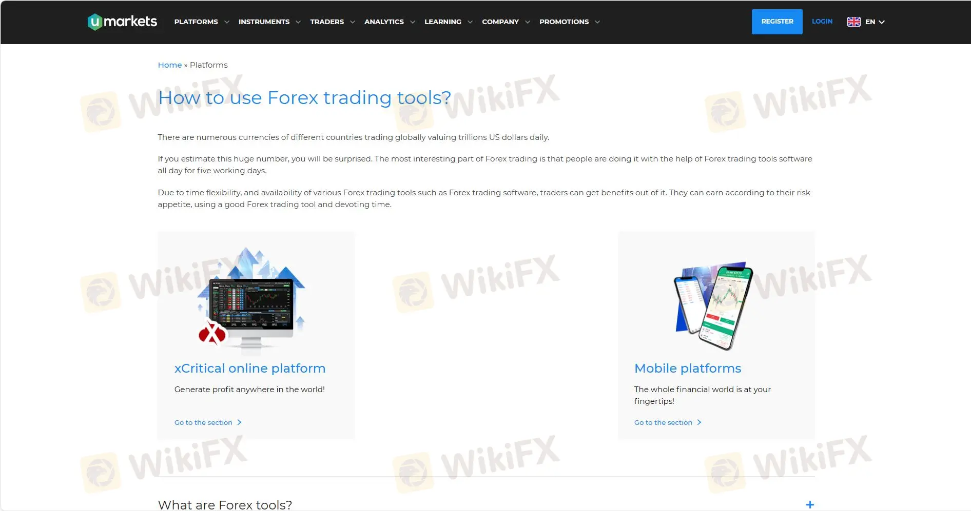 Answer: Umarkets uses the xCritical online platform along with mobile trading platforms.