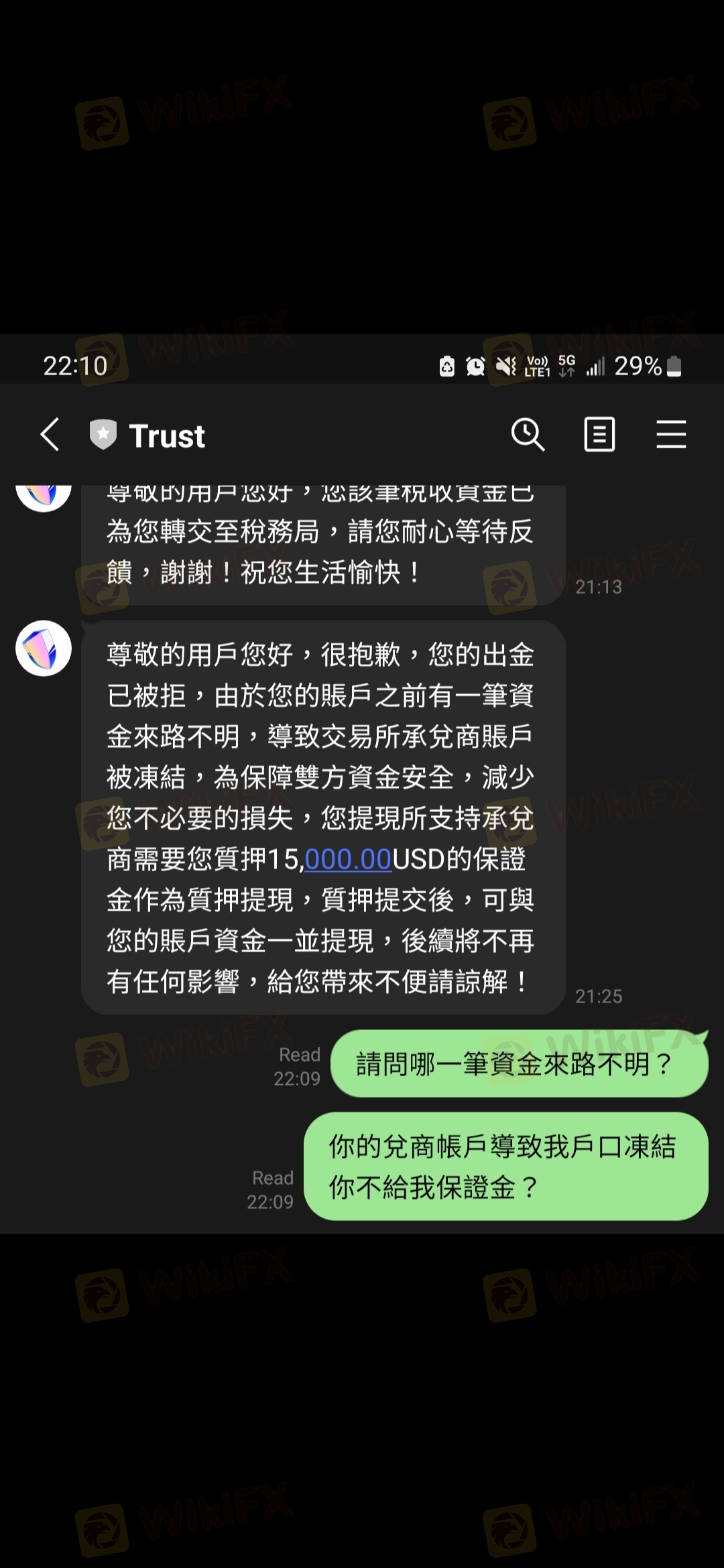 Traders need to carefully identify the strengths and weaknesses of brokers. Trustwallet limited does not disclose account information to traders, but first proposes a condition requiring a certain margin, which is a surprise to traders. In addition, poor customer service is not worth traders choosing this broker.