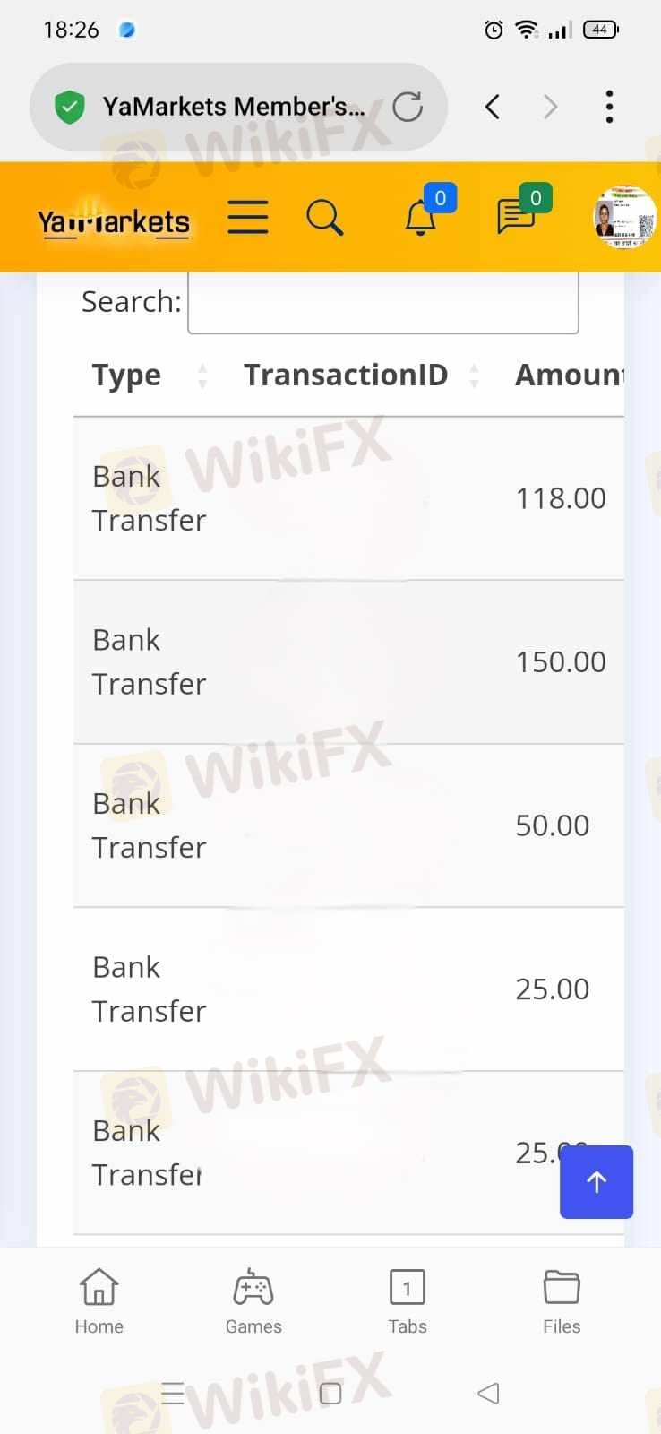 The first deposit amount must be $1 or above. YaMarkets accepts Mastercard, Bank Transfer, Lipi, Visa, Phonepe, Net Banking, and Pay App for deposit and withdrawal. However, transfer processing times and associated fees are unknown.