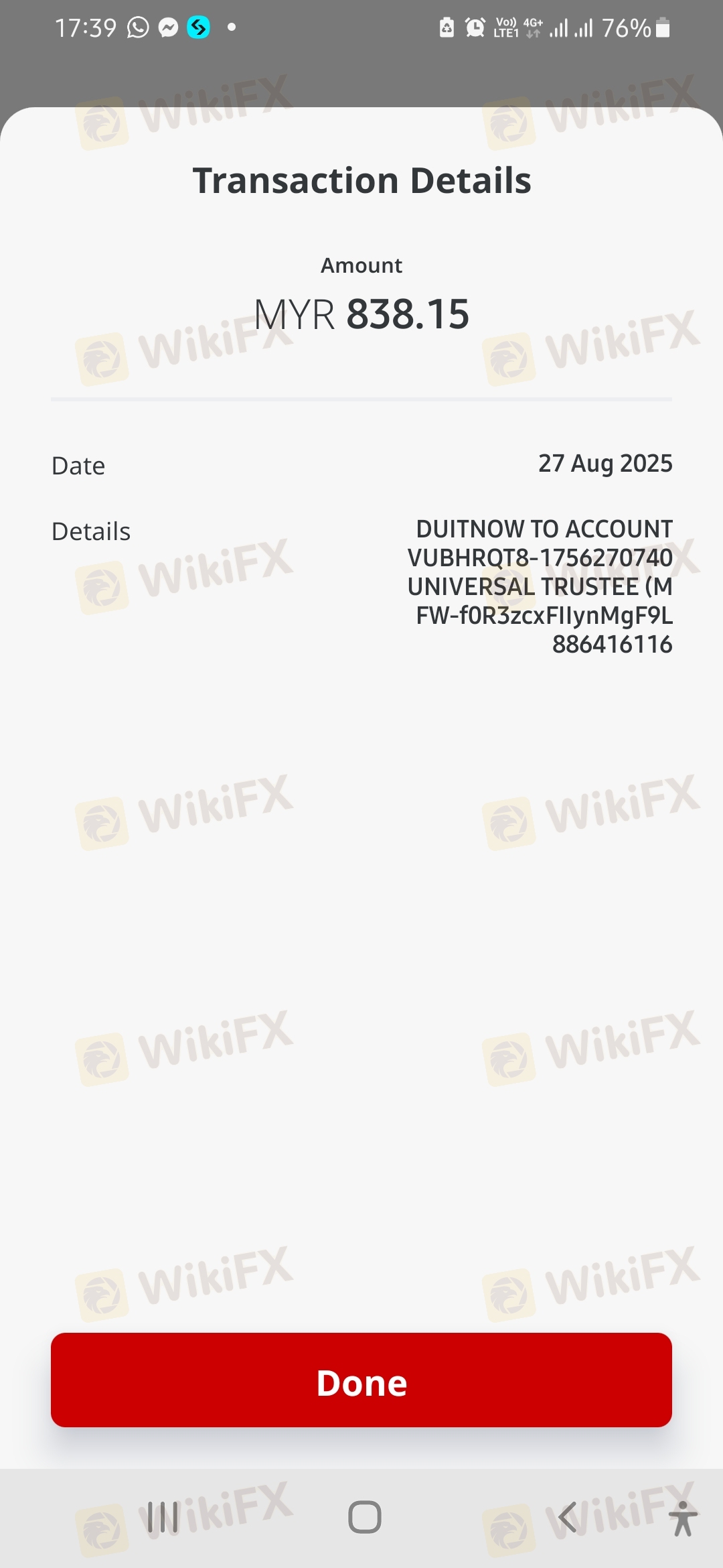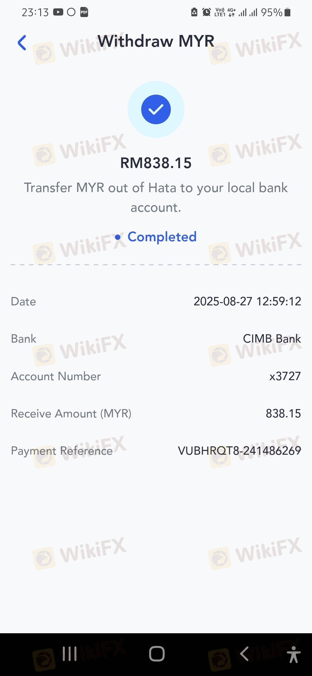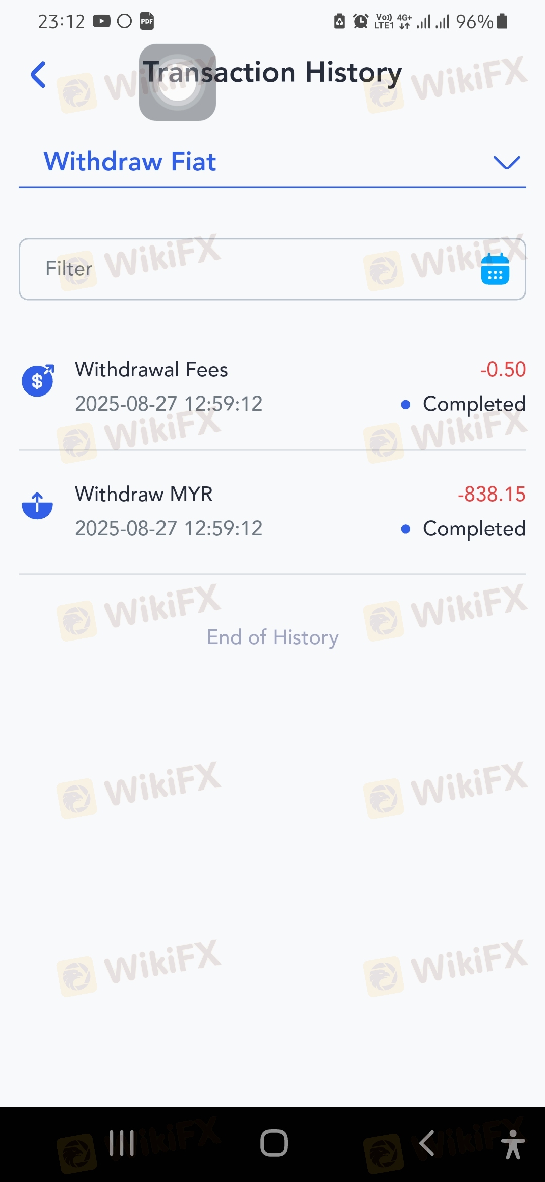 Withdrawals are processed and credited within 1-2 business days, with available methods including cryptocurrency payment systems and bank cards provided by CLEANO. Traders are charged a 6% service fee for withdrawals via cryptocurrency payment systems, while no service fee is required for withdrawals through CLEANO bank cards.