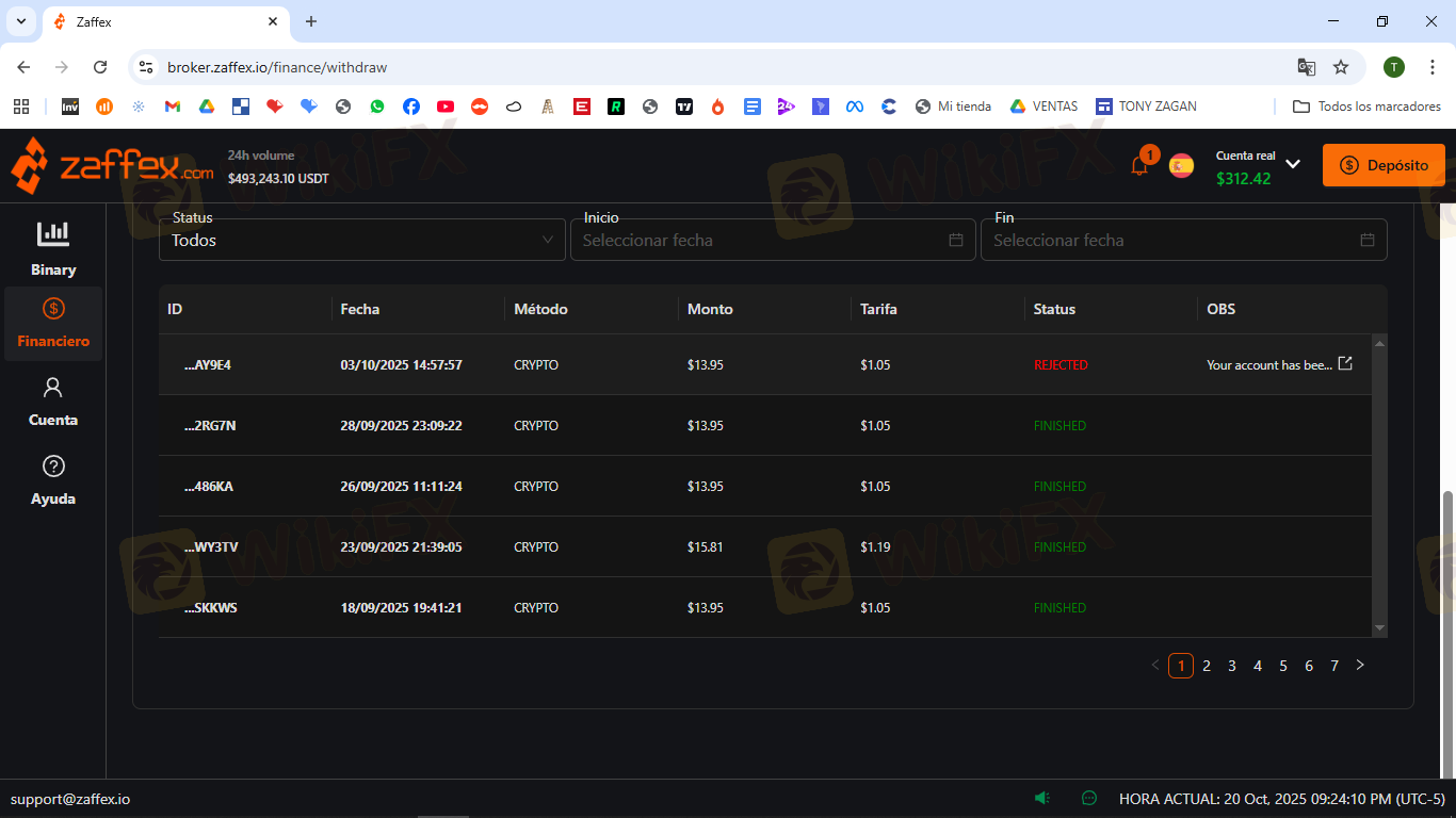 Formal complaint for Fraud and Illegal Retention of Capital (Broker Zaffex) Date: October 9, 2025 Subject: Fraud Alert: Total withdrawal blocking, mass account banning, and domain change by Zaffex broker. Affected Investor Information: | Category | Information | | :--- | :--- | | Full Name: | Saul Garcia | | Account ID in Zaffex: | 01JNQ9S1X658TZD0EYSH1S0G6P | | Total Blocked Amount: | 50.69 USD | | Withdrawal Amount (Demanded): | 50 USD |