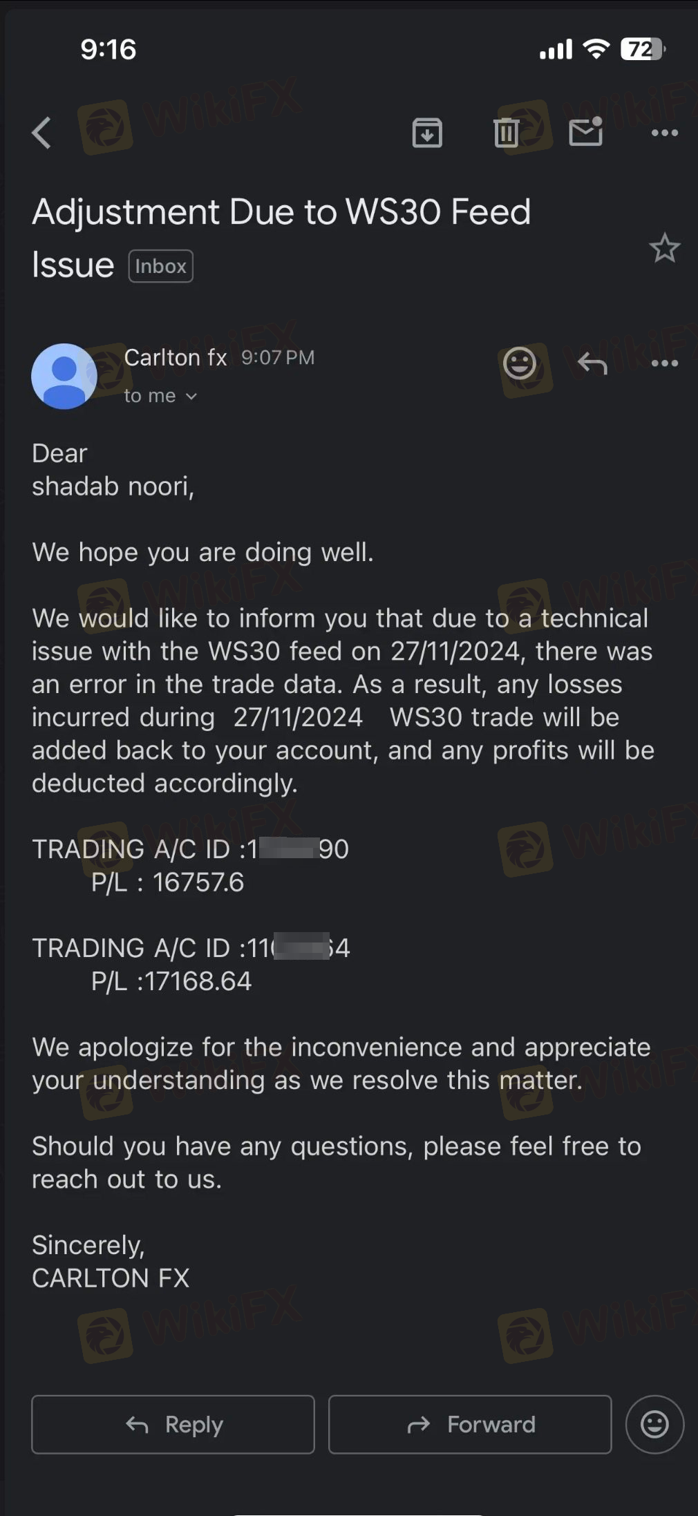 The most important factor in measuring the safety of a brokerage platform is whether it is formally regulated. CARLTON is an unregulated broker, which means that the safety of users' funds and trading activities are not effectively protected. Investors should choose CARLTON with caution.