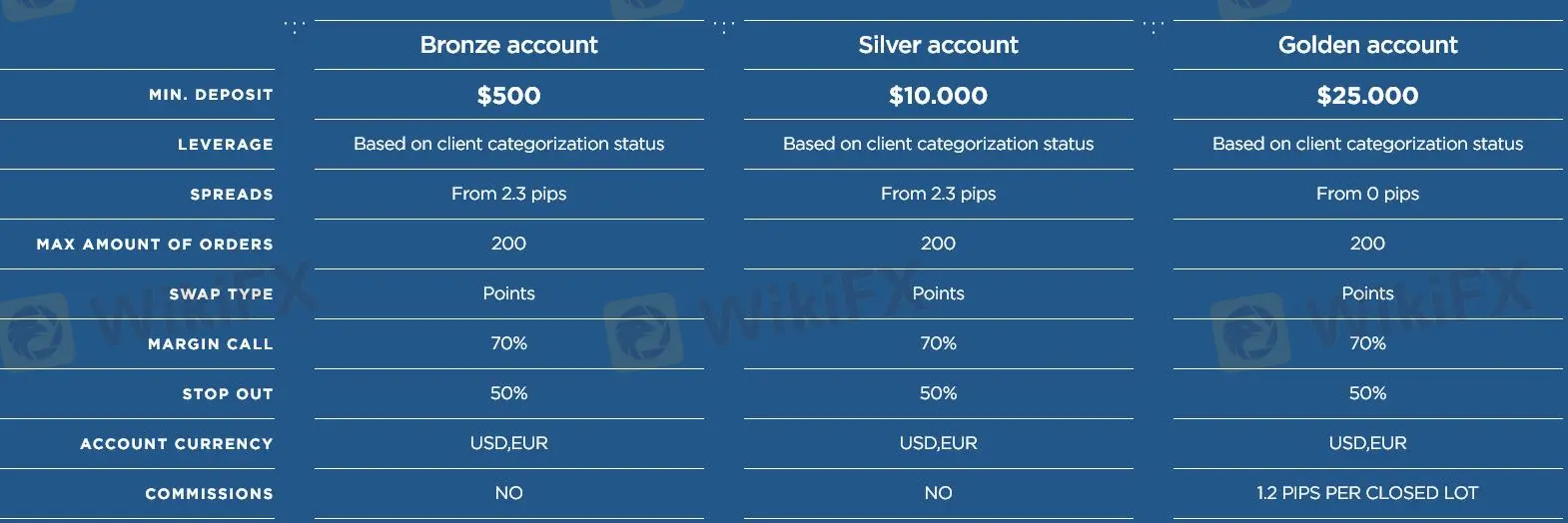 XXLMARKETS provides three account types: Bronze, Silver and Golden.