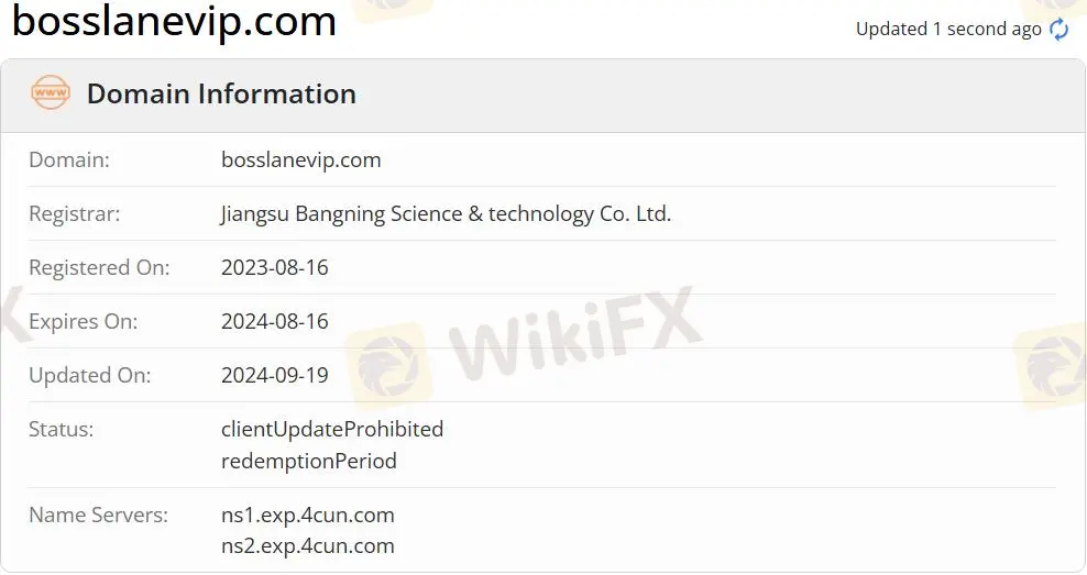 Bosslane is currently unregulated, and its operation is not subject to laws and regulations. In addition, the query information on its official website shows that it is registered in 2023, but it is currently inaccessible.