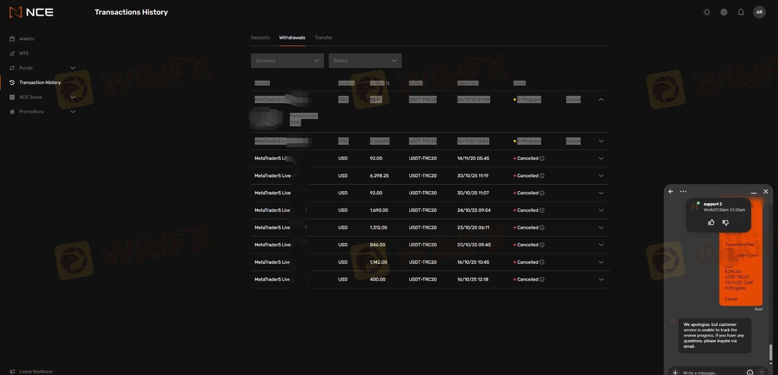 NCE Delayed my withdrawal since October 14, 2025, Please WIKIFX help me.
