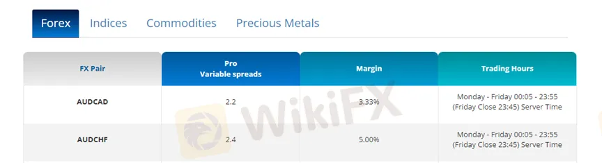 Forex CFDs provides its clients with variable spreads that are affected by what type of accounts traders are holding. The spread in the Advanced account start from 1.4 pips, while the Pro account from 1.0 pips.