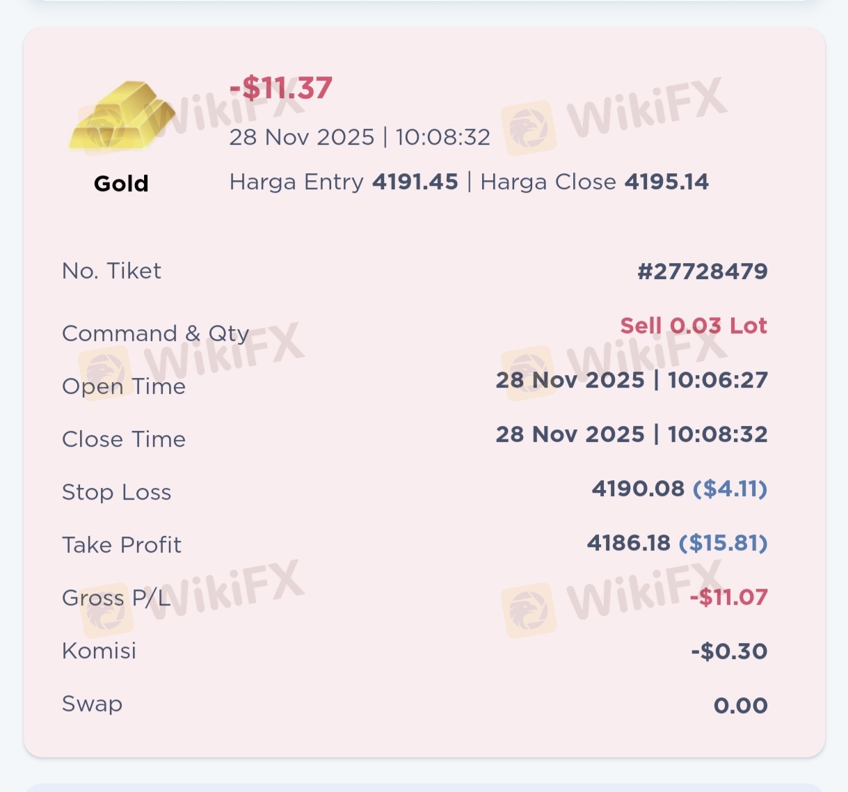 This broker looks like he's looking for profit and cheating. At the beginning of the analysis it was indeed selling, then the market went up first then went down again, then when it went up suddenly there was a WA notification, it said auto cut from the system. eh, when I looked at the balance, there was only 15$ left. Because of the auto deduct, the market just dropped drastically, what a bastard this broker is. I pray for all the employees.