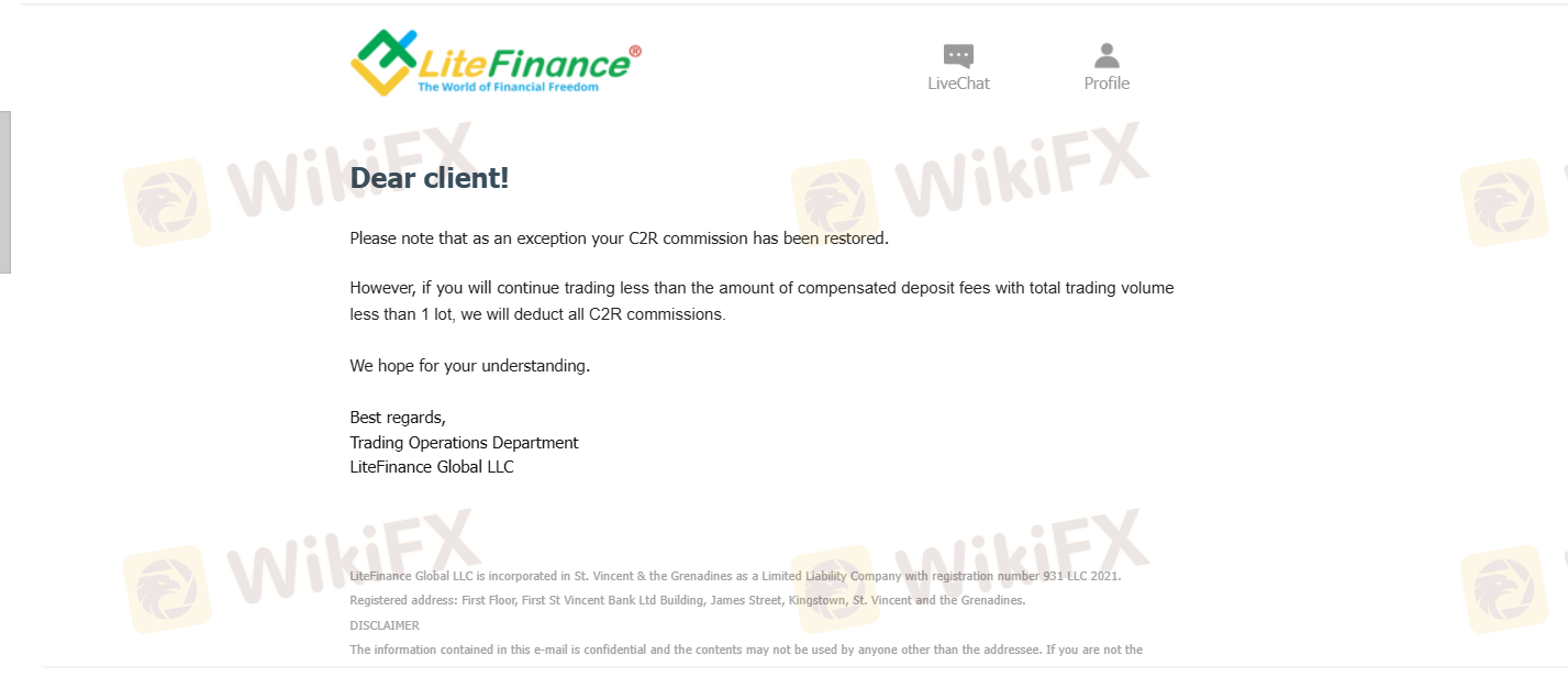 LiteFinance has officially responded to my previous complaint, admitting they seized $193 under the excuse of "Restoration of Commission" (C2R OUT). They are using hidden, unfair terms to justify stealing client capital from accounts . I am attaching their email response as proof of their predatory behavior.
