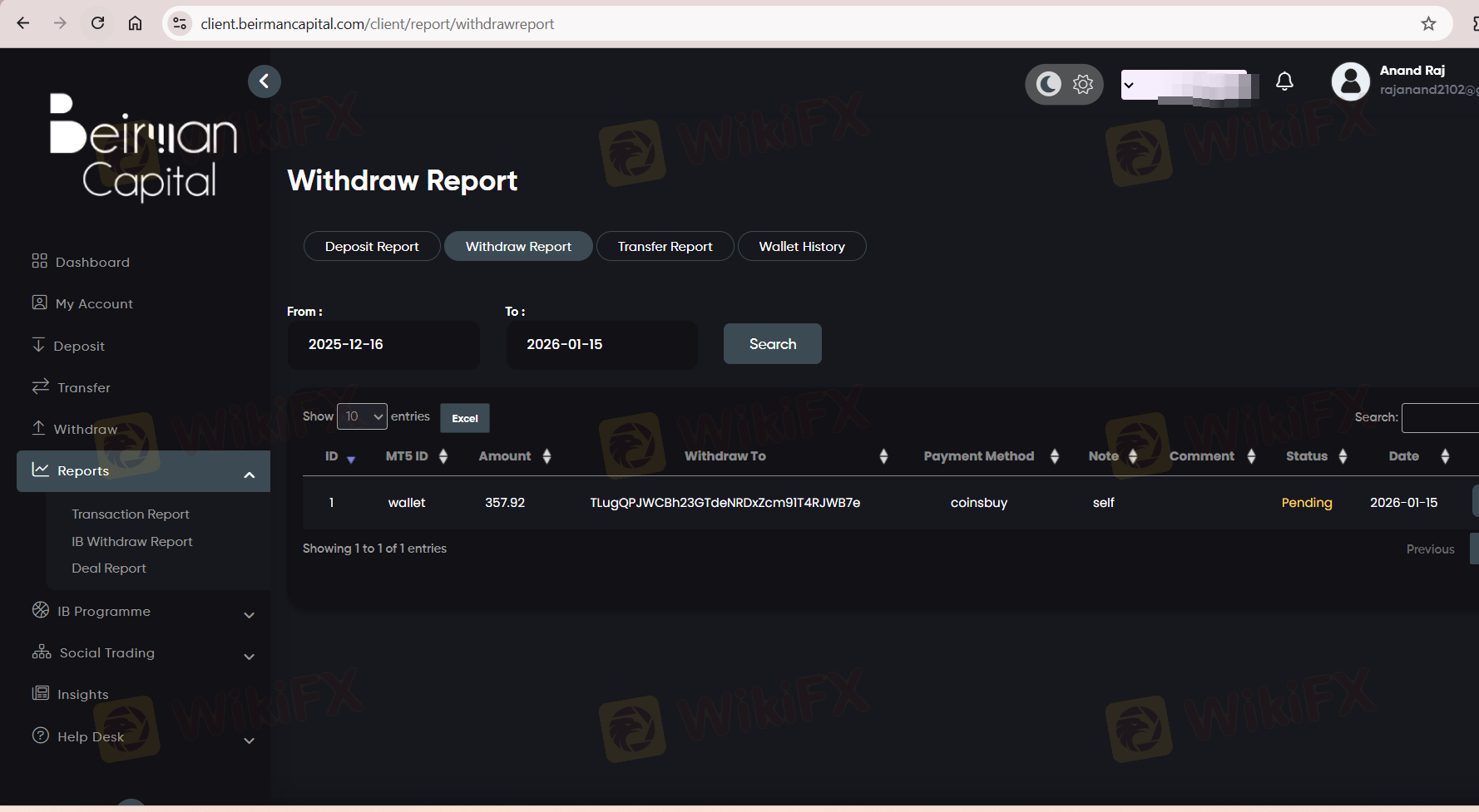 Beirmancapital offers 6 payment options: VISA, MasterCard, Skrill, BANK TRANSFER, Bitcoin, Perfect Money. And there are no deposit fees.