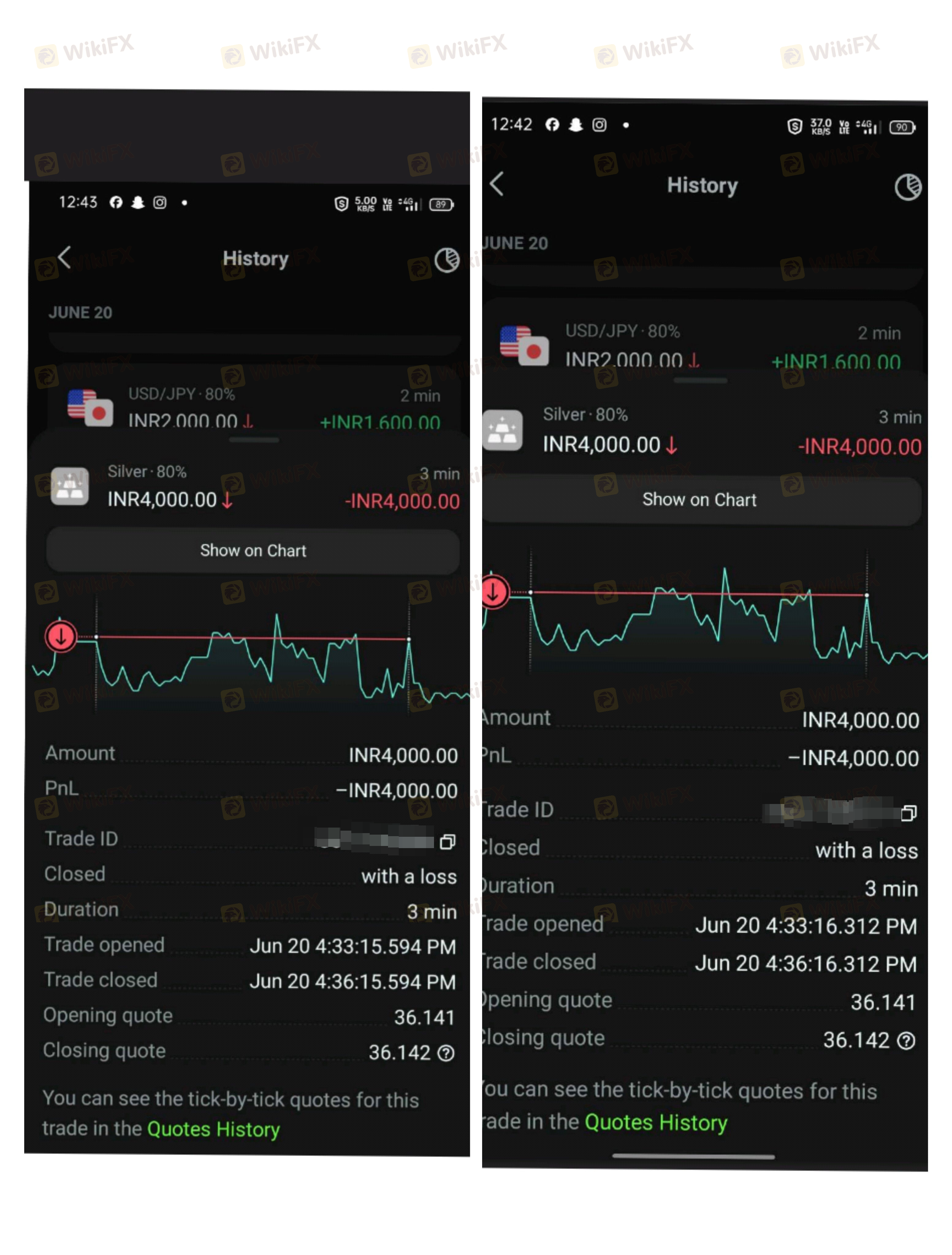 Over more than 4 years of trading on this platform, I have closely monitored my trades and observed that "the majority of my trades frequently incur losses in the very last second." There are many instances where "the closing price equals the opening price," yet I still lose money on that trade. The strange part is that "when I later check the trade history, I discover the price has been altered." I suspect the Broker/Platform has been interfering with my trades, consistently causing me to lose money at the very last second. Particularly when I invest large amounts, they orchestrate a consecutive series of losing trades leading to repeated account blowouts. Below are screenshots of a streak of consecutive losing trades resulting in repeated account blowouts and frequent last-second losses. I'm sharing this for everyone to consider before trading on this platform. This platform is far from credible, despite their claims.