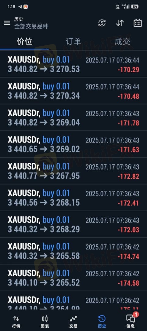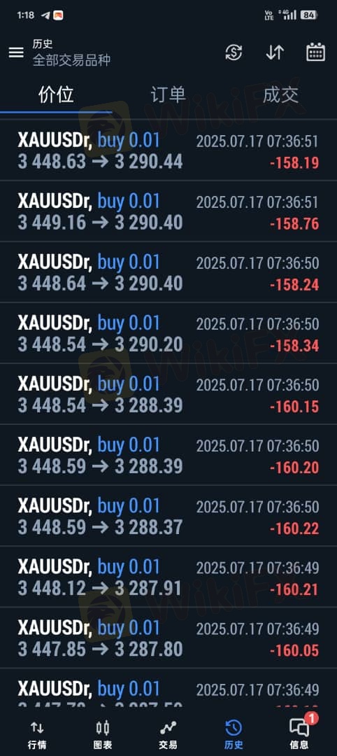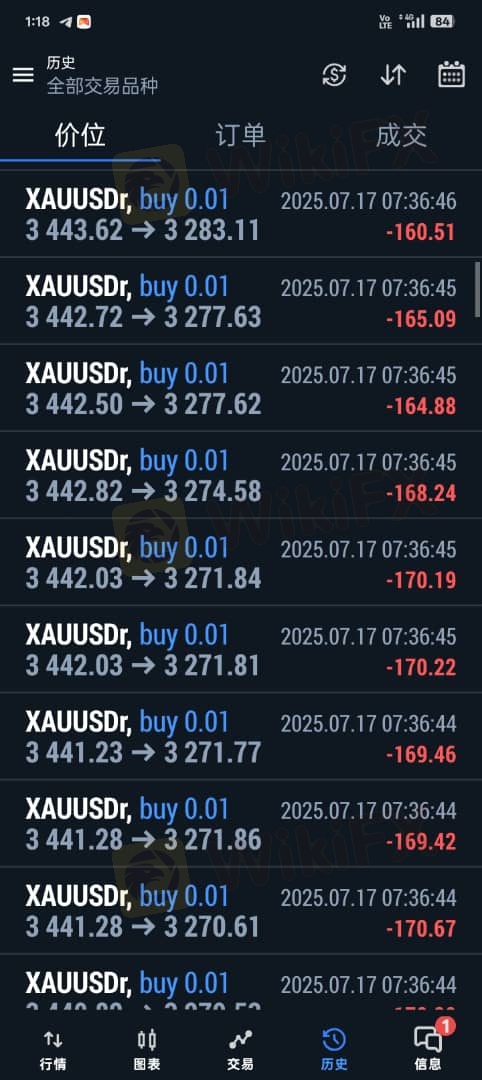 我当时在马来西亚一家名为 HFMARKET 的金融投资中心,以受英国金融行为监管局(FCA)监管的公司的名义进行黄金期货交易。 事件发生在7月17日(交易平台时间:上午7:36),当时 HFM MT5 交易平台强制平仓了我的交易。平仓价与实际市场价格不一致,交易平台日志中记录的平仓订单与平仓时间也不一致。 该公司无法解释平仓价与实际市场数据之间的差异。对于同时平仓的交易,买卖订单的平仓价相差100点: 买入价:3400,但在3249被强制平仓 卖出价:3254,但在3427被强制平仓 当日市场最高价为3352.86,最低价为3309.45。 我提供了证据并要求公司妥善解决此事,但公司未能提供令人满意的解释。交易点差出现了100点的不合理差异。 此外,我提交的照片也存在严重的差异: 4:36,我未进行任何操作,但点差和价格相差100点,平台强制平仓是在4:36这个时间 7:36,点差和价格记录不匹配。后台记录显示 7:36没有任何订单,但强制平仓时间却被记录为照片中的时间7:36。 然后我立即向HFMARKETS发送电子邮件提出投诉。 该公司要求我提交所有支持证据和照片,我也一直提供照片证据了。然而,该公司至今未提供任何合理回应,并保持沉默。