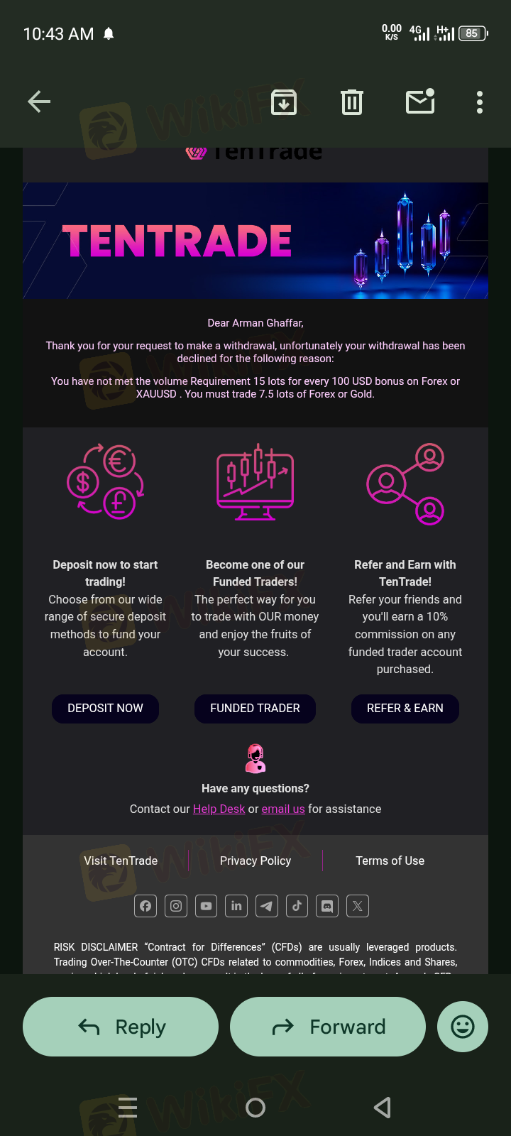 I wish I had never come across TenTrade. This has been the worst trading experience of my life. I initially deposited money with them, hoping to trade and withdraw my profits like any normal broker would allow. But that was a huge mistake, Everything seemed fine at first , trading was smooth, and I made some decent profits. But when it came time to withdraw, that’s when the nightmare began. My withdrawal requests were either ignored, delayed indefinitely, or outright rejected with ridiculous excuses. They even had the audacity to accuse me of violating their terms without providing any proof. After weeks of back-and-forth emails and live chats that went nowhere, I realized that TenTrade was never going to let me withdraw my hard-earned money. It’s clear that they are running a scam, trapping traders with fake promises and then refusing to release their funds. I strongly advise anyone thinking about using TenTrade to stay away.