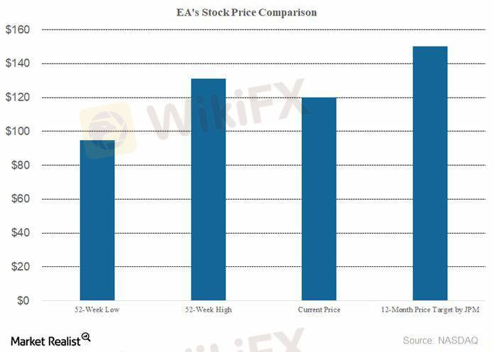 Price target of $150 for EA. Recently, investment bank J.P. Morgan (JPM) initiated coverage of Electronic Arts (EA). J.P. Morgan has an “overweight” rating on the stock with a 12-month price target of $150, which indicates that EA is trading at a discount of 25% to JPM’s estimates.