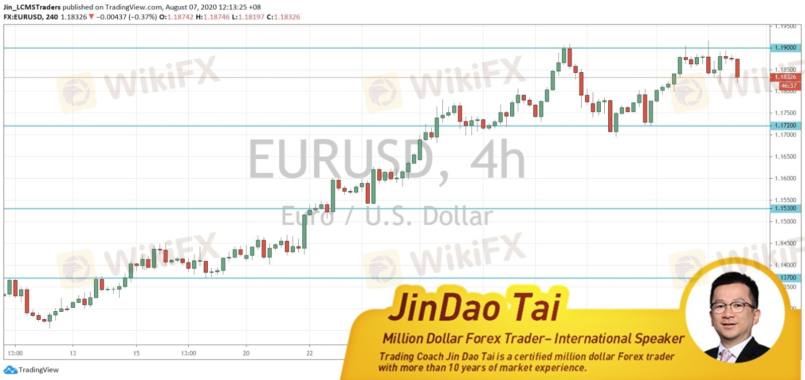 Currently, EUR/USD is bouncing off the resistance zone of 1.19000 and the next support zone is at 1.17200.