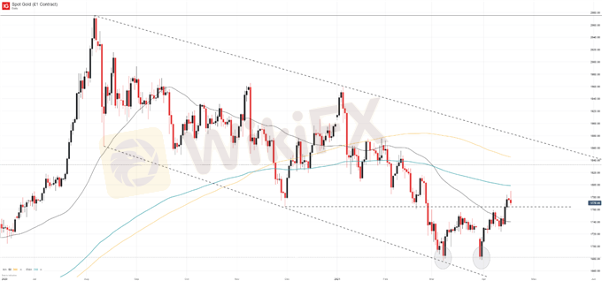 GOLD PRICE CHART: DAILY TIME FRAME (JUNE 2020 – APRIL 2021)