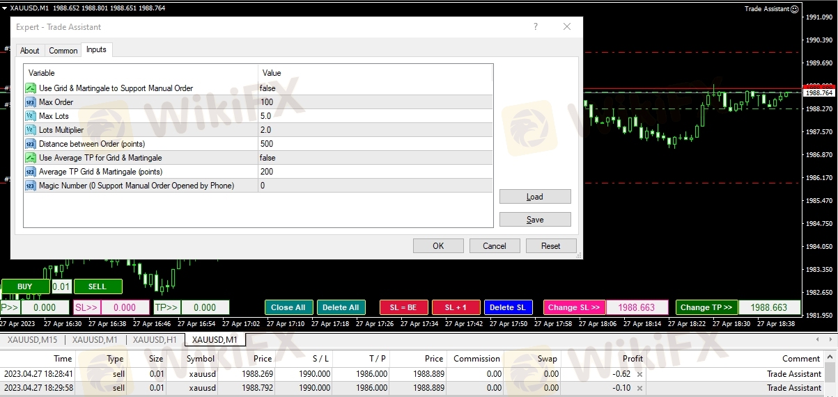 - It can manage your trade using grid only or grid+martingale or none of them.