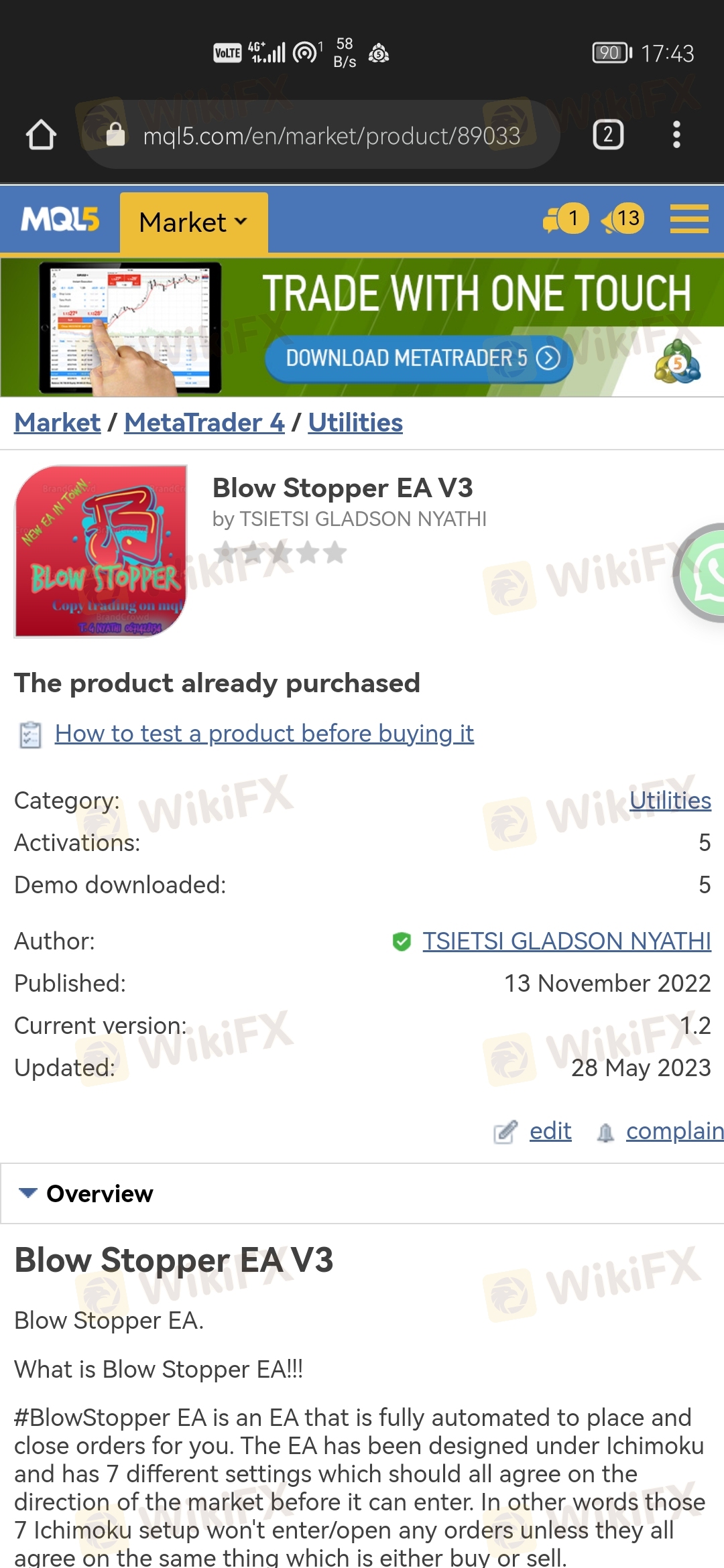 #BlowStopper EA is an EA that is fully automated to place and close orders for you. The EA has been designed under Ichimoku and has 7 different settings which should all agree on the direction of the market before it can enter. In other words those 7 Ichimoku setup won't enter/open any orders unless they all agree on the same thing which is either buy or sell.
