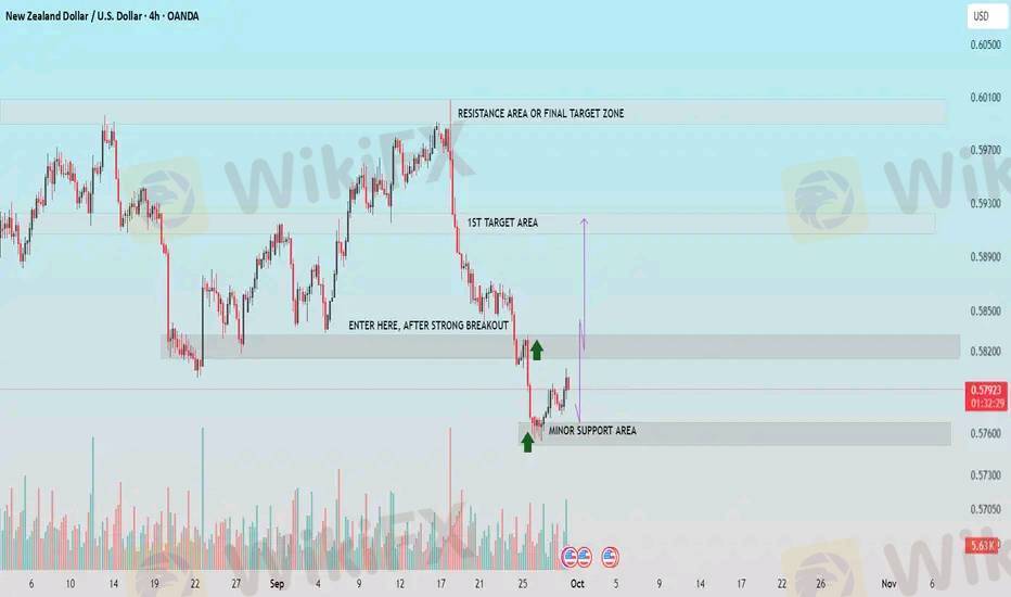Current Price: 0.57938 The pair is showing signs of a potential bullish reversal from a minor support area (around 0.57500–0.57750). A bullish candle formation suggests buying pressure near this zone.