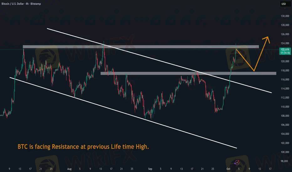 BTC is facing Resistance at previous Life time High. It may retrace littele bit for some correction before moving furthur upwards.