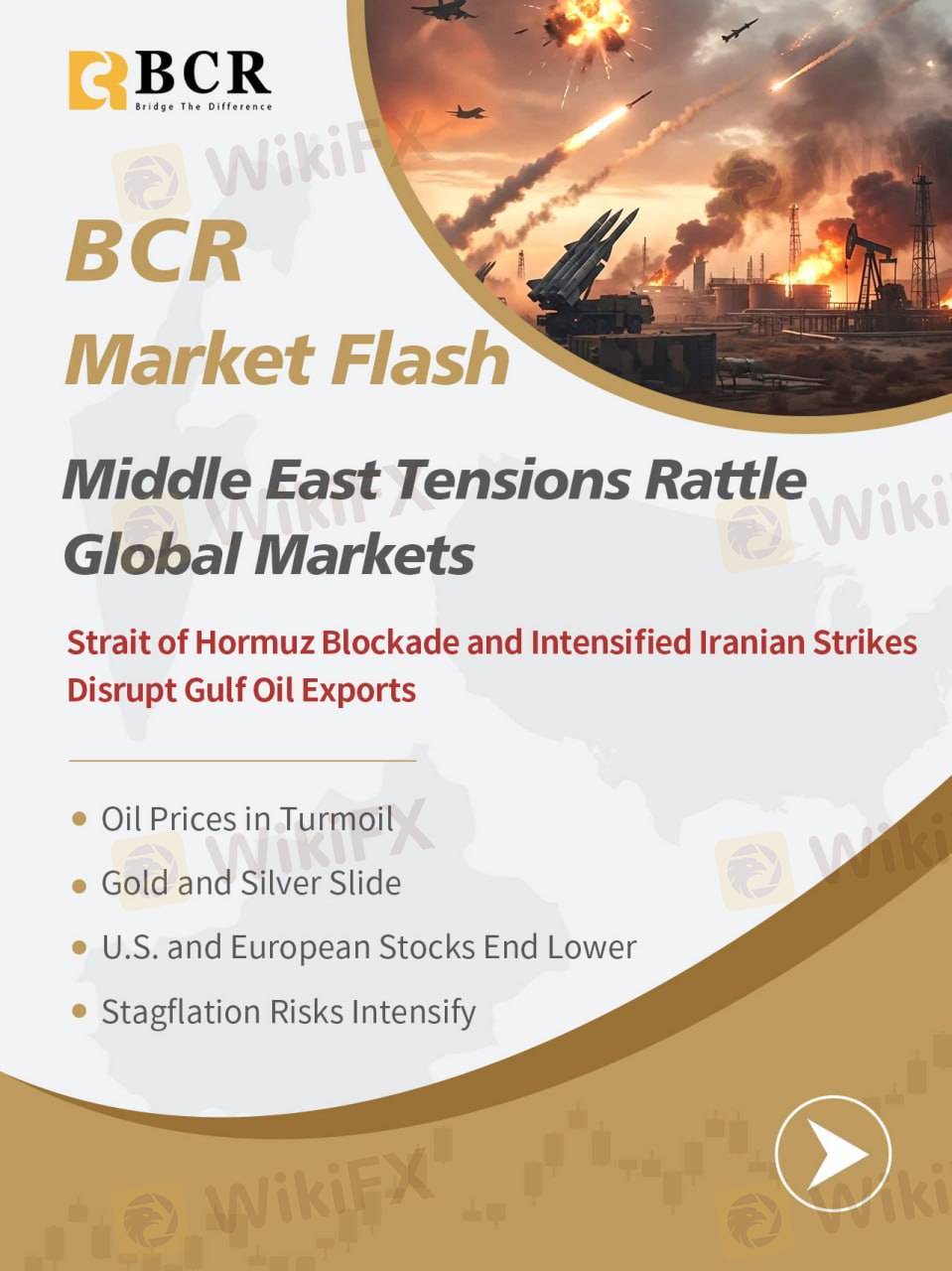 Strait of Hormuz blockade, oil turmoil, gold & silver slide, stocks lower. Stagflation risks intensify. Stay informed but avoid emotional trading during volatility. #TheBCR #BCRTrading #BCRGlobal