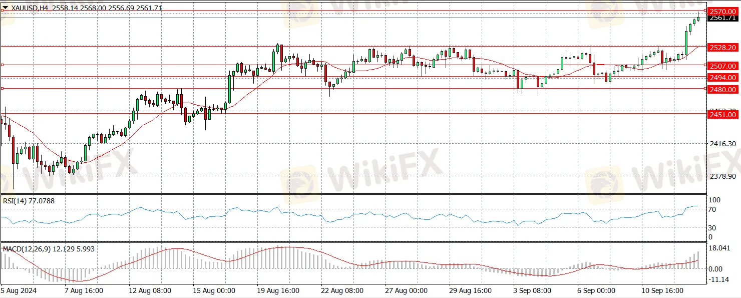 Gold remains bullish, trading at a record high of around $2,550, supported by a slight pullback in the U.S. Dollar. U.S. data revealed that annual producer inflation fell to 1.7% in August from 2.1% in July.