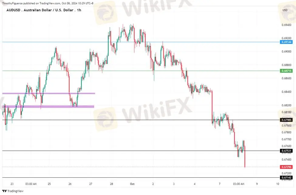 AUDUSD - The Australian dollar is currently falling, dropping below 0.67531 and moving toward 0.67142. We expect the market to drop further, as anticipated, due to the market's sensitivity to global security risks.