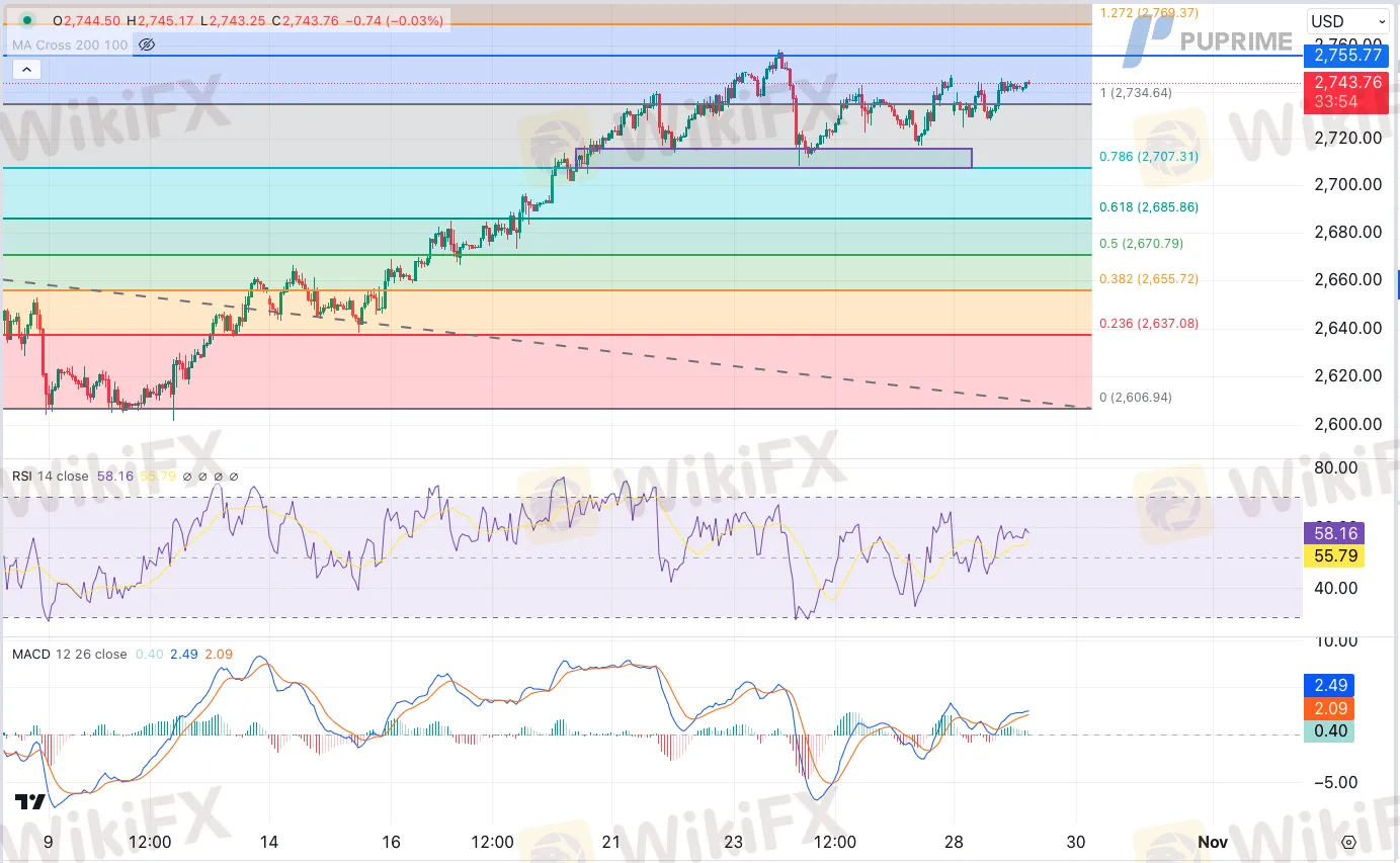Support level: 2735.00, 2707.30